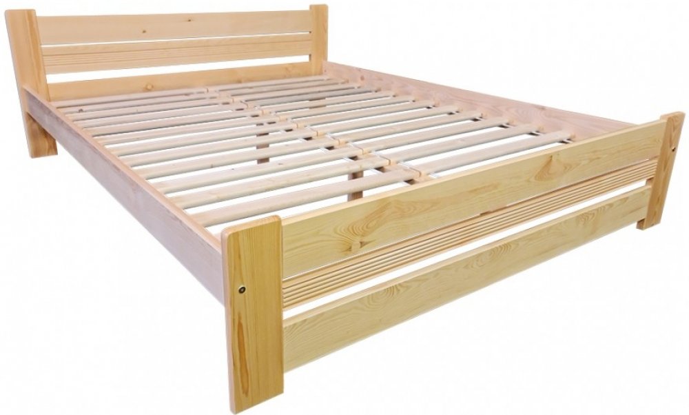 Základní provedení postele je borovice lakovaná bezbarvým lakem.
