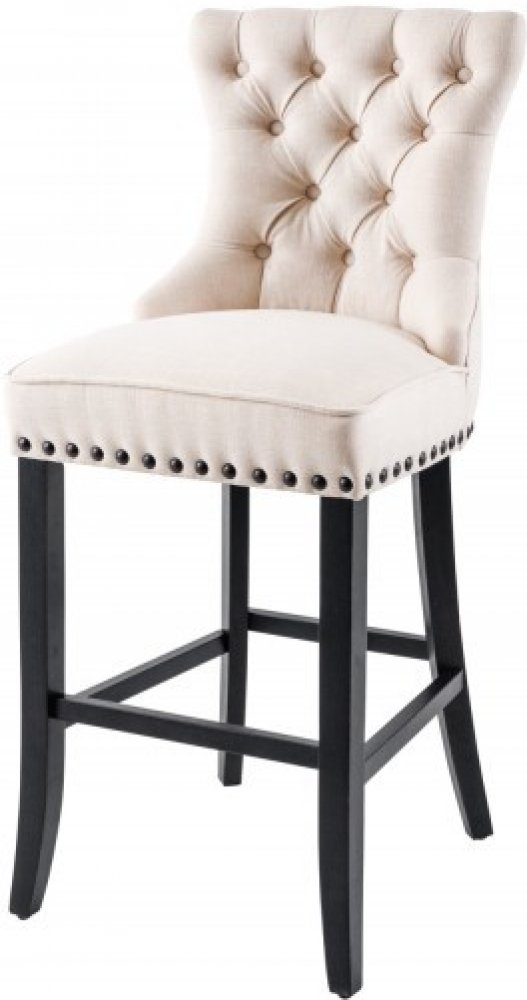 Barová židle CASTLE v béžové barvě je ideální volbou pro ty, kteří si chtějí připadat jako jeho veličenstvo na zámku. Její elegantní, zámecký a luxusní vzhled podtrhují ozdobné knoflíky. Potah ze strukturované látky nejen vypadá luxusně, ale také poskytuje příjemný a měkký pocit při sezení, což zvyšuje komfort této židle. Tvarované nohy a celkové provedení zajišťují, že židle je pevná a stabilní, a zároveň dodávají místnosti nádech elegance a sofistikovanosti.