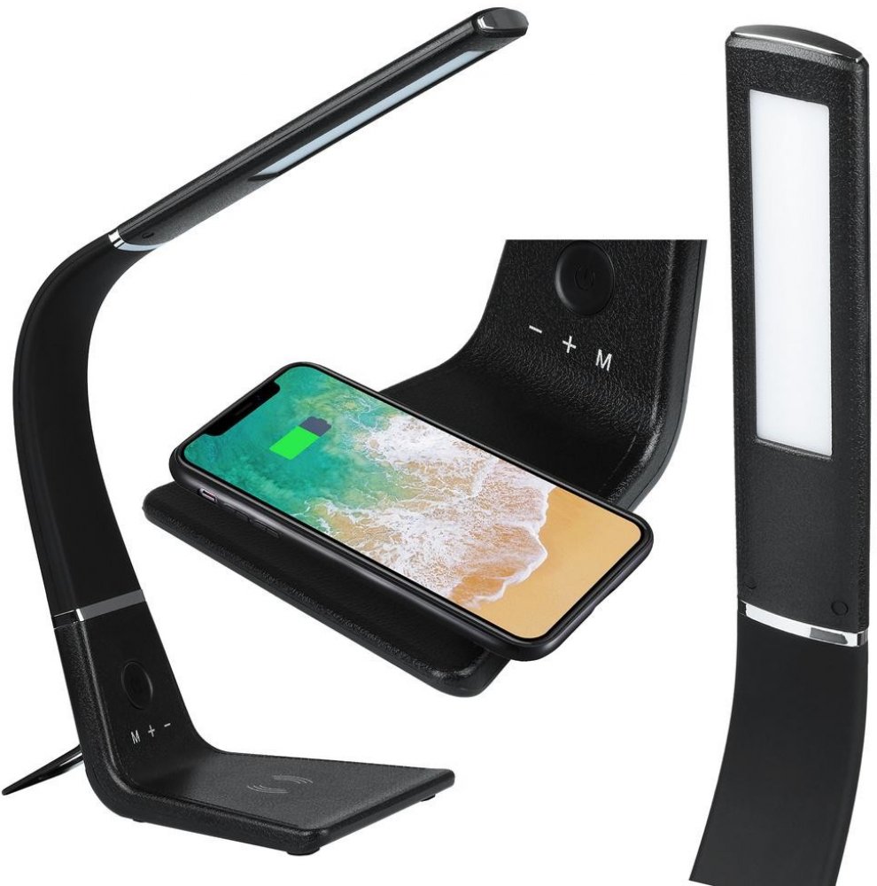Stolní LED lampa s Qi indukční nabíječkou Lampa je vyrobena z vysoce kvalitních materiálů. Kombinace materiálu ABS s texturou připomínající texturu kůže a pružného ramene z estetického silikonu. Díky tomu má elegantní vzhled a je ideální do kanceláře nebo kanceláře. Nastavitelná barva světla pomocí tlačítka M: Studená bílá Neutrální bílá, denní Teplá bílá Jemné stmívání a osvětlení: Lampa je vybav...
