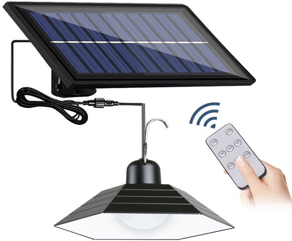 Závěsné solární zahradní svítidlo 30 LED SMD s čidlem soumraku 3 předdefinované úrovně jasu a doby svícení lampy ovládané IR dálkovým ovladačem Rozsvítí se po setmění IP44 - odolnost proti povětrnostním vlivům 2200 mAh baterie napájená solární energií Ekvivalent běžné 50W žárovky Ideální do stanu, kempování nebo kempování Ideální pro osvětlení nemovitosti Solární lampa je navržena tak, aby zaručov...