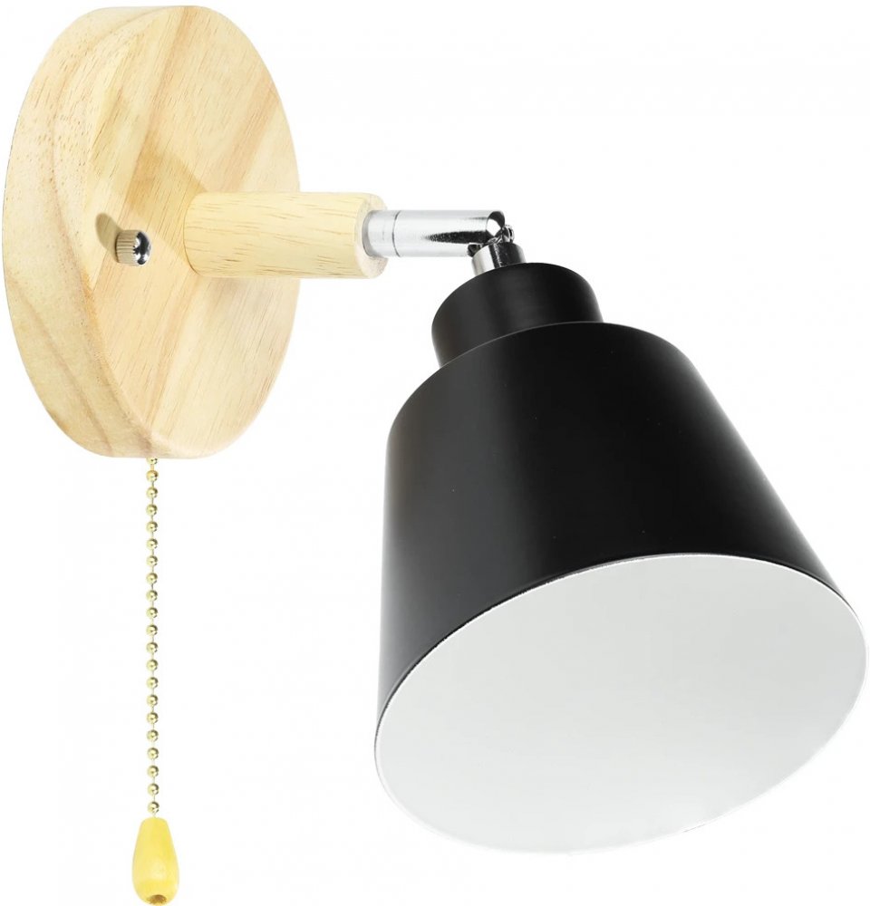 Nástěnné svítidlo - pohyblivé bodové svítidlo E27 Barva: Matná černá + přírodní dřevo Zdroj světla: 1x E27 (zdroj není součástí balení) Nastavení úhlu dopadu: Ano Max. výkon žárovky: 40W Napětí: 230V Šířka rozety: 12 cm Průměr reflektoru: 12 cm Výška reflektoru: 15 cm Celková výška lampy: 26 cm Materiál: Hliník + dřevo Instalace: Povrchová montáž Rozsah nastavení: 180° (opírat se), 360° (otáčení) Délka kabelu spínače: 30 cm Třída odolnosti: IP20 Certifikáty: CE, RoHS Včetně montážních kolíků. Moderní lampa s minimalistickým designem Vysoce kvalitní materiály Hliník prášková barva + přírodní dřevo Snadný v montáži Jeden světelný bod s možnost nastavení úhlu osvětlení (-90° - 90°) a rotace (360°) Univerzální objímka žárovky - velký závit E27 Rovný a estetický konstrukce Nástěnné svítidlo má řetězový spínač který je pohodlné a zajímavá alternativa pro tradiční osvětlení lampy Stínidlo lampy je vyrobeno z vysoce kvalitního hliníku s práškovým nástřikem což mu umožnilo to dát matný, odolný povlak. Díky jednoduchosti stylu se perfektně hodí do moderních interiérů. Dodá osobitý charakter, který bude ladit s téměř každou místností . Funkčnost a zajímavý styling zvýší estetické hodnoty vzhled, mimo jiné: kuchyně obývací pokoj kancelář ložnice hala Svítidlo je vhodné pro standardní a LED žárovky s paticí E27.