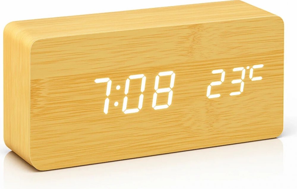 Dřevěné digitální hodiny s teploměrem a budíkem – styl a funkčnost v jednomElegantní digitální hodiny v pouzdře imitujícím přírodní dřevo spojují moderní design a praktické funkce. Zobrazí čas, datum i teplotu v místnosti a umožní nastavit až tři nezávislé alarmy. Jemné LED podsvícení a stylový vzhled zajišťují, že hodiny se hodí do každého interiéru – od ložnice až po kancelář.Hodiny nabízejí řad...