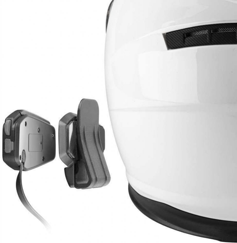 Díky minimální tloušťce interkom nijak nenarušuje design helmy, instalace je rychlá a snadná. Samotná baterie interkomu vydrží až 15 hodin provozu, je odnímatelná a instaluje se na zadní část helmy.