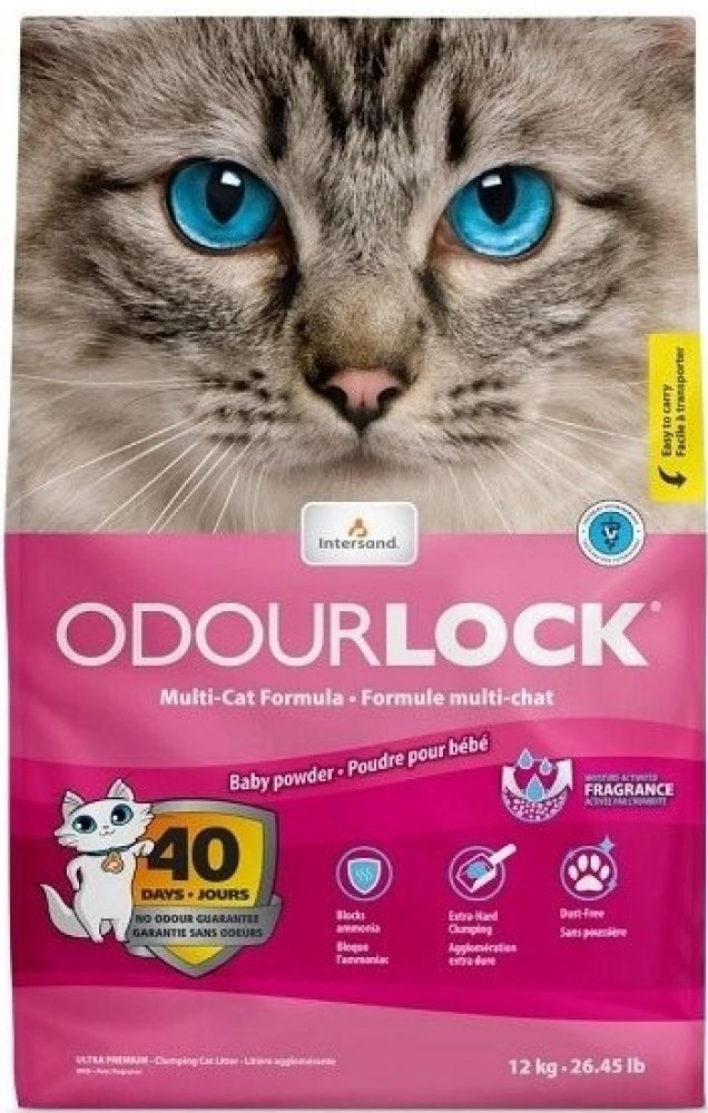 Intersand kočkolit Odour Lock vůně dětský pudr 12 kg