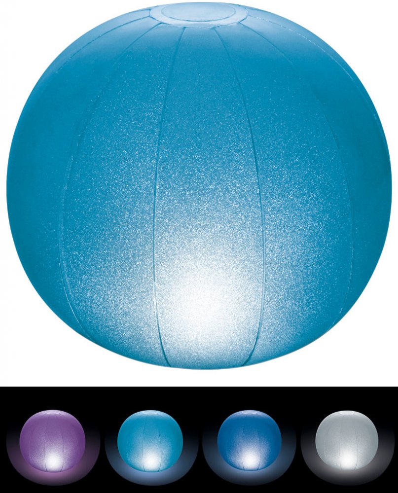 Svítící koule Intex Floating Led Ball vytvoří jediněčnou a okouzlující atmosféru na noční vodní hladině. Disponuje dvěma světelnými režimy. Intex Floating Led ball je nafukovací svítící koule, která zajistí unikátní atmosféru na noční hladině. Svítí čtyřmi barvami. Má dva světelné režimy. V prvním režimu svítí jednou barvou a v druhém barvy pozvolna mění. Světelné režimy se aktivují pomocí dotykov...