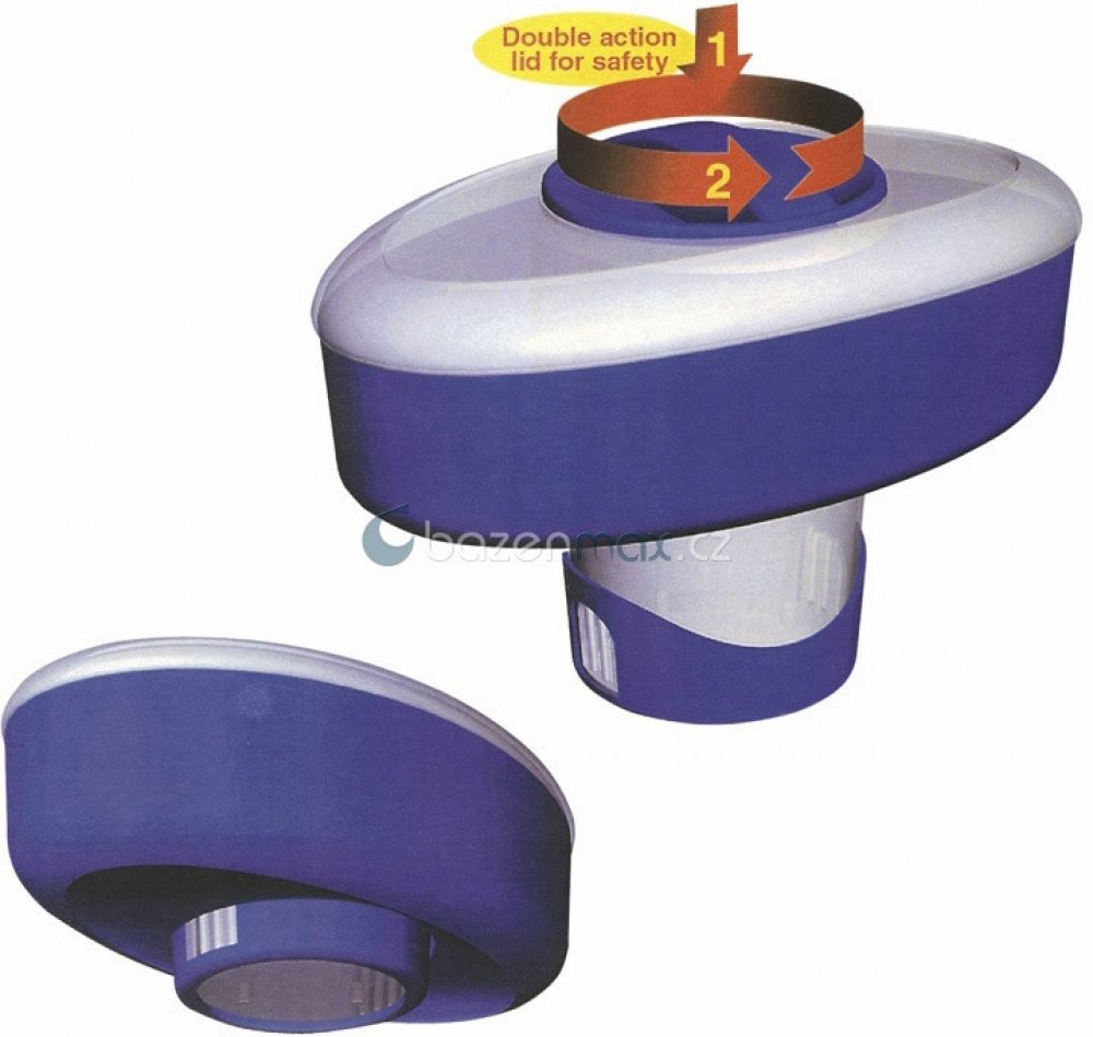 Potom je plovoucí dávkovač chemie značky INTEX tím pravým řešením pro vás! Tento modrý dávkovač, vyrobený z odolného polypropylenu, vám pomůže efektivně eliminovat nečistoty a bakterie, což přispěje k maximálnímu potěšení při každé koupeli. Stačí umístit tabletu chlóru pod víčko a nechat dávkovač vykonávat svou práci. S jeho pomocí si můžete být jisti, že voda v bazénu zůstane čistá a bezpečná pro celou rodinu.