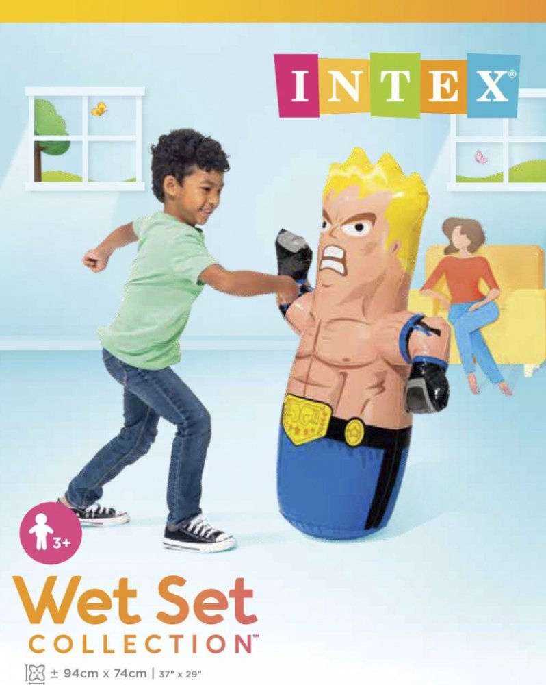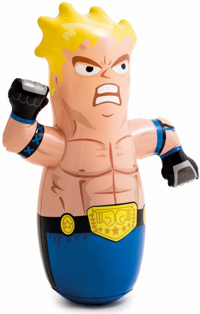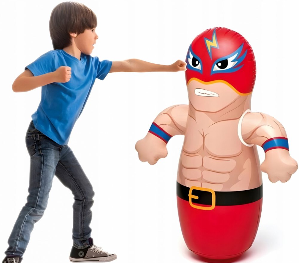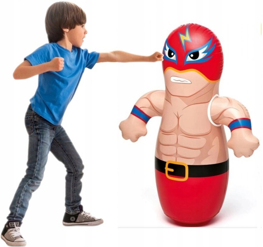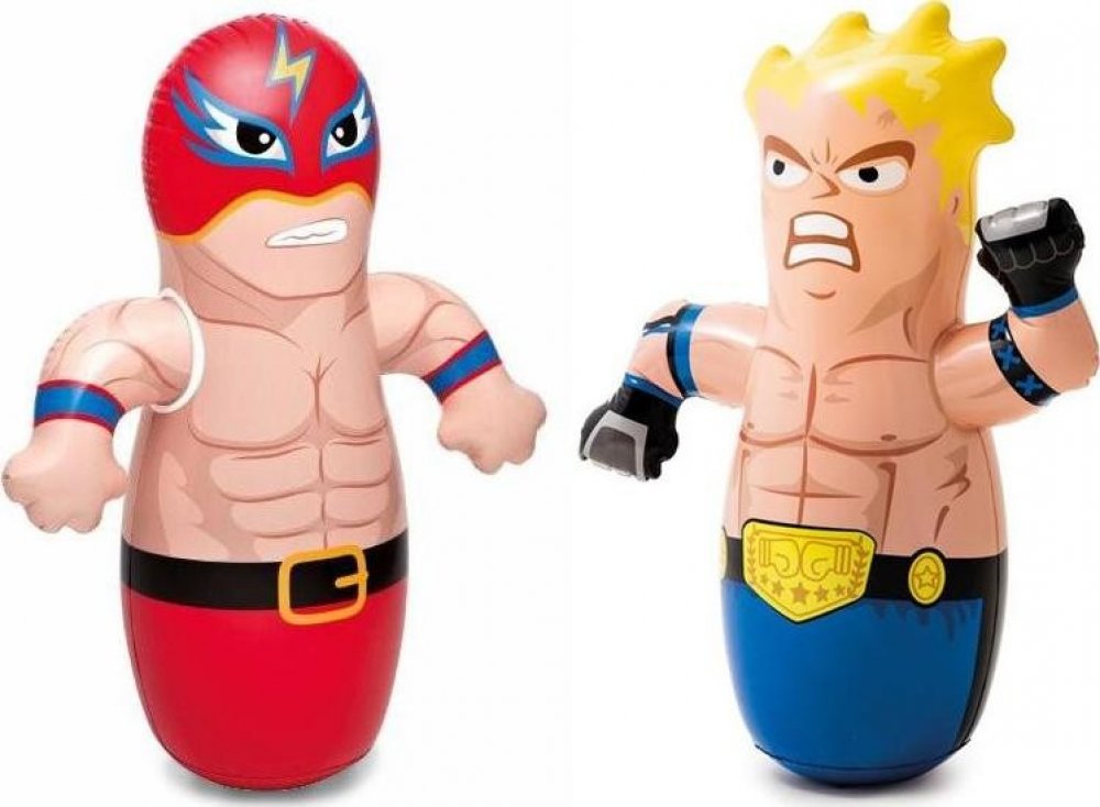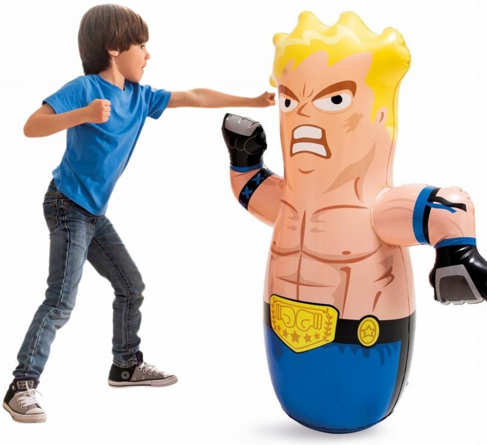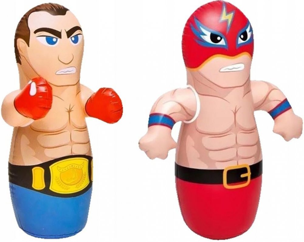 Nafukovací boxovací figurka určená pro vnitřní i venkovní použití. Boxovací panák udrží svou stabilitu díky vodní zátěži umístěné ve spodní části této hračky a lze se s ním tak donekonečna prát. Panák je dostupný ve dvou provedeních a je vyroben z kvalitního pevného vinylu (0,20mm). Výrobek není primárně určen do vody, ale je vhodný pro širokou škálu venkovních aktivit. Zajímavá hračka pro vaše dě...