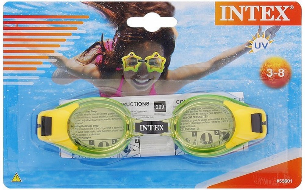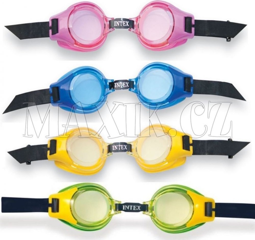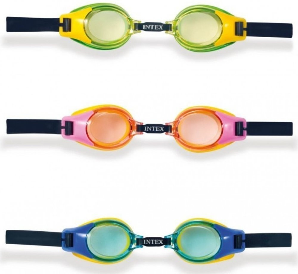Plavecké brýle Intex pro děti od 3 let s UV ochranou a polykarbonátovými čočkami a nastavitelným řemínkem. Nafukovací hračky a potřeby Intex splňují nejpřísnější bezpečnostní normy na zpracování a použité materiály.