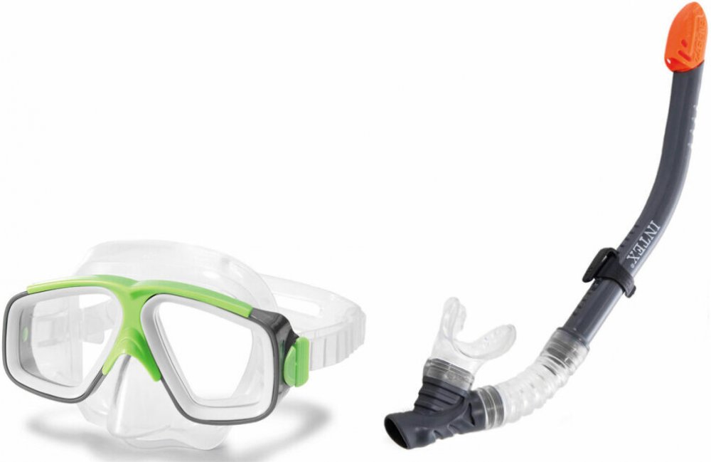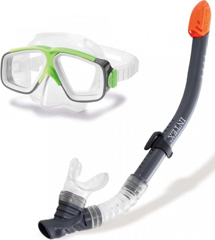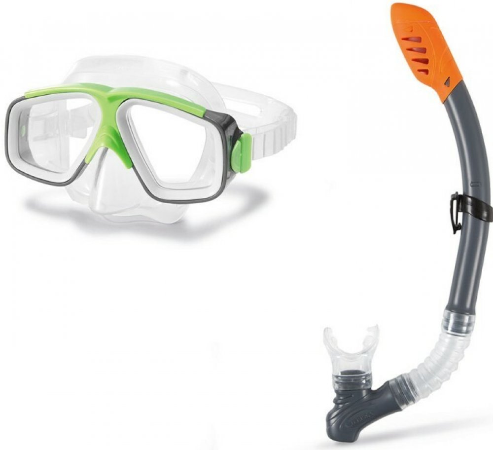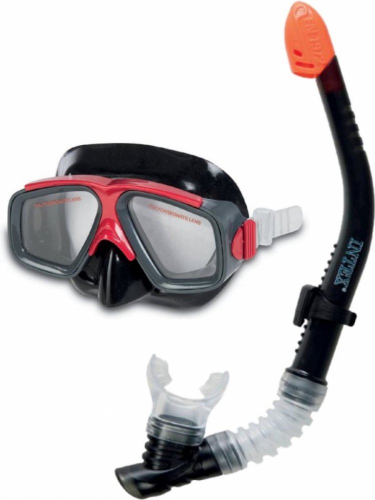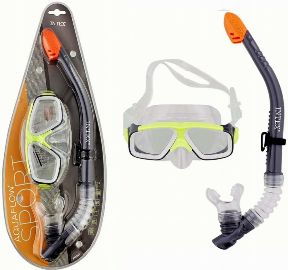 Je vlastně potápěčská sada Intex, která obsahuje brýle a šnorchl. Maska je vyrobena s kvalitními bezpečnými polykarbonátovými skly a rámeček z měkké gumy, což zajišťuje pohodlné a přesné sednutí na obličeji. Šnorchl má sponu pro připnutí k brýlím a klapku zabraňující vniknutí vody. Šnorchl má komfortní středně velký náustek.