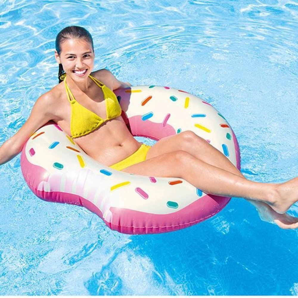 Nafukovací "nakousnutý" vinylový kruh Intex Donut růžový přináší všem milovníkům vodních hrátek nekonečné moře skvělé zábavy. Měkoučký kruh je vyrobený z kvalitního a odolného materiálu a je skvělou hračkou pro všechny kluky, holky i dospělé. Atraktivní design v zářivých barvách je jako dělaný pro veselé letní radovánky