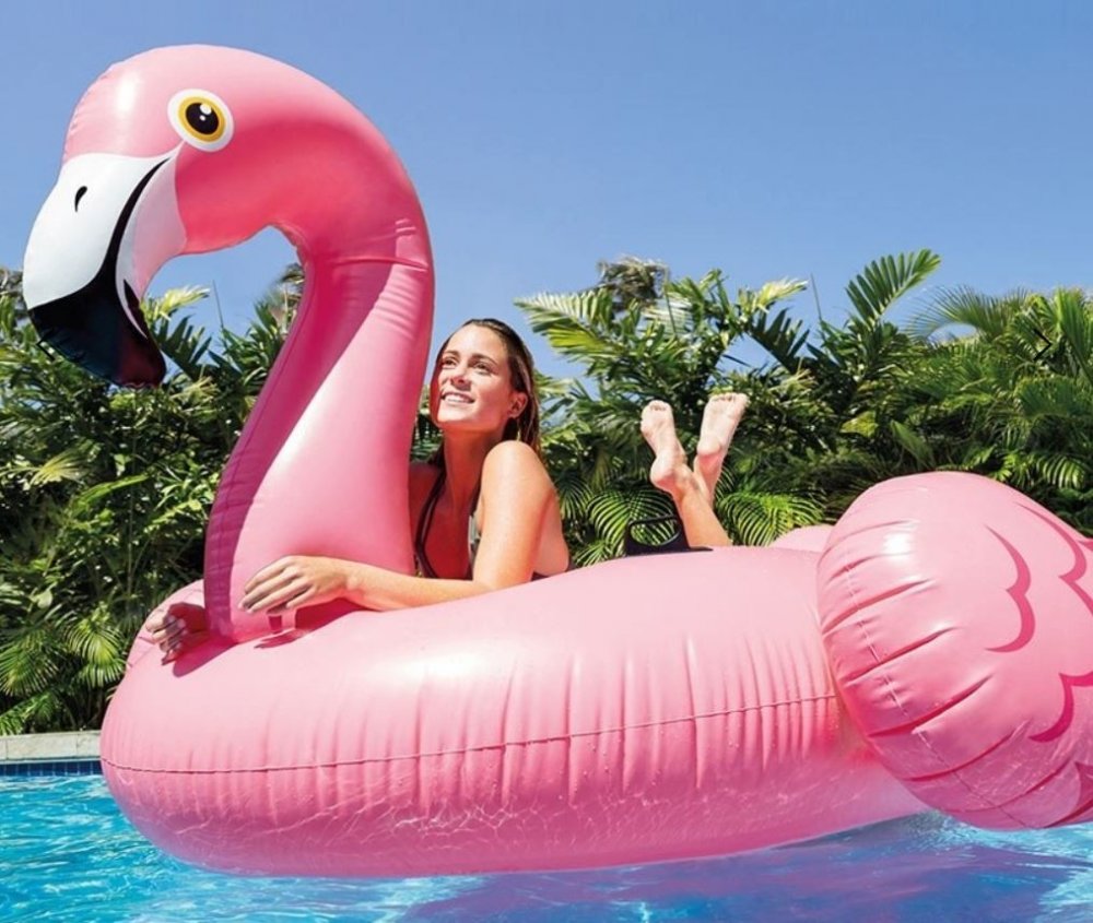INTEX 56288 - Růžový velký nafukovací plameňák - plavidlo pro děti na vodu, se dvěma úchyty. Matrace je stabilní, má dvě pevná držadla a dvě vzduchové komory. Neobsahuje ftaláty a latex.