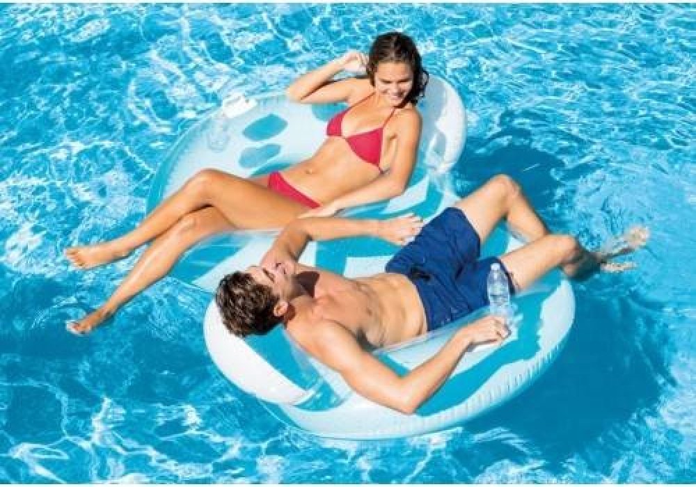 Jedná se o novinku od firmy Intex na rok 2019. Nafukovací kruh pro dva je vyroben z kvalitního a zdravotně nezávadného vinylu o síle 0,3 mm. Ideální pro povídání a zábavu na vodě. Součástí jsou dva držáky na nápoje pro snadnější manipulaci. Obě strany mají opěrku hlavy. Nafukovací kruh pro dva má velikost 198 × 117 cm.