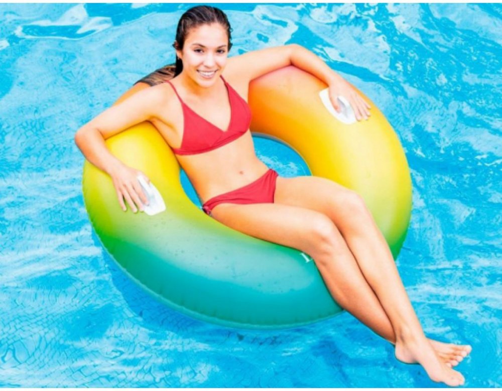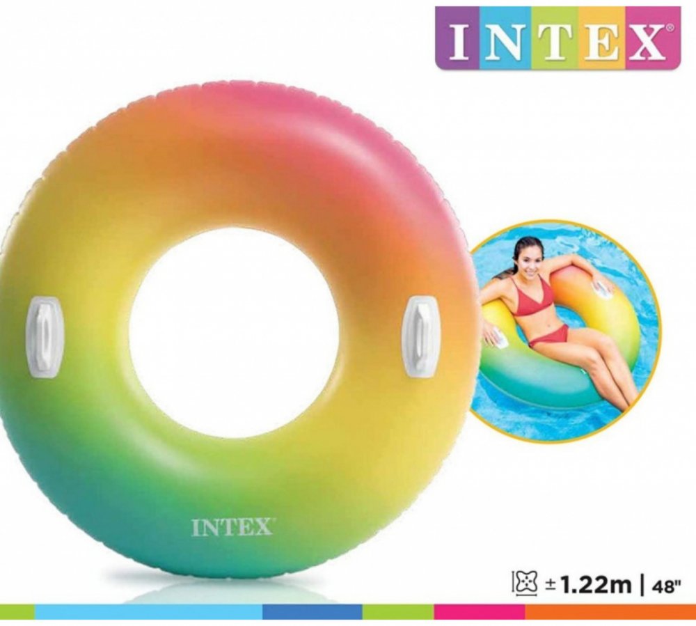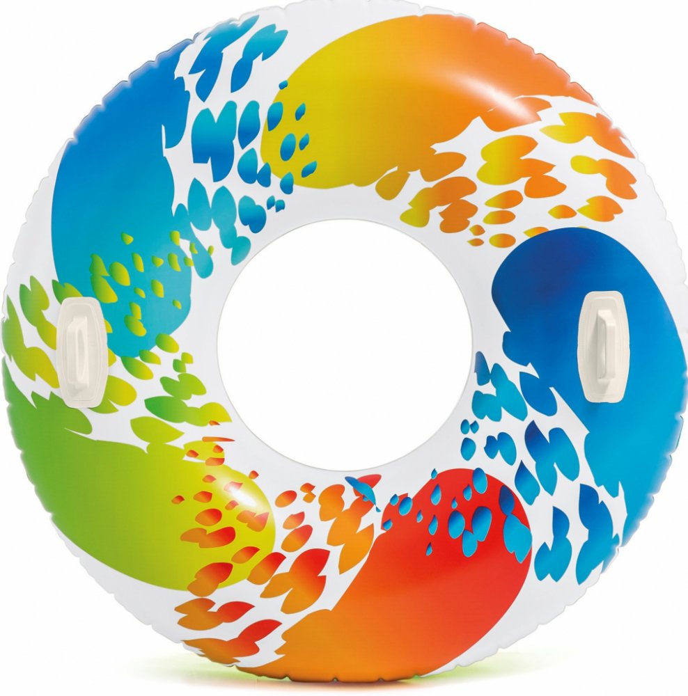 Nafukovací vinylové kolo s držadly Intex přináší všem milovníkům vodních hrátek nekonečné moře skvělé zábavy. Měkoučký kruh je vyrobený z kvalitního a odolného materiálu, doplňují ho dvě madla zajišťující lepší stabilitu a je skvělou hračkou pro všechny kluky, holky i dospělé. Atraktivní design v zářivých barvách je jako dělaný pro veselé letní radovánky.