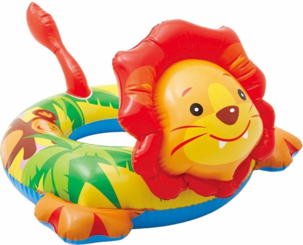 58221 Dětský nafukovací plovací kruh s hlavičkou zvířátka na vodu, ve třech variantách - opice, krokodýl, lev