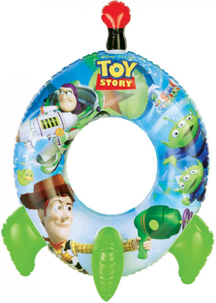Dětský nafukovací kruh Intex s roztomilými obrázky postaviček z Toy Story (Příběh hraček), který má navíc tvar rakety, potěší každého začínajícího plavce.
