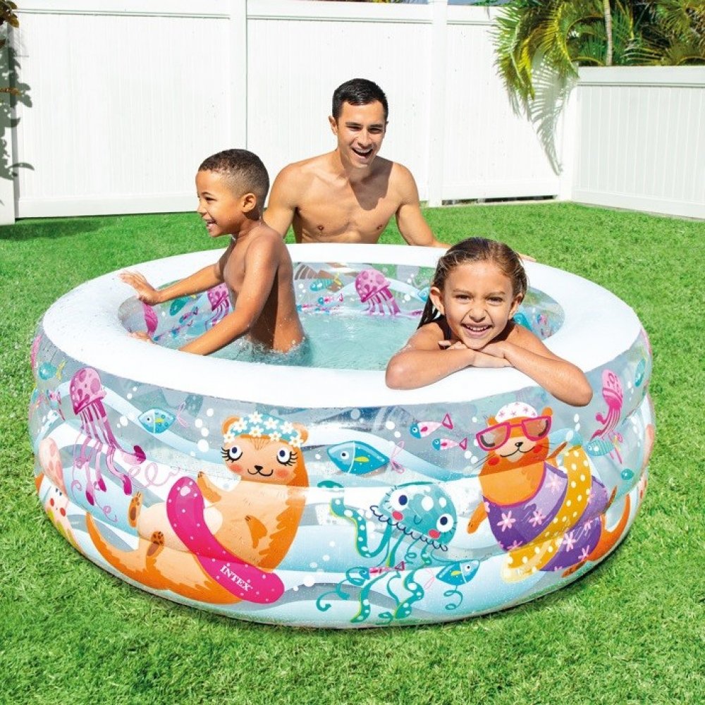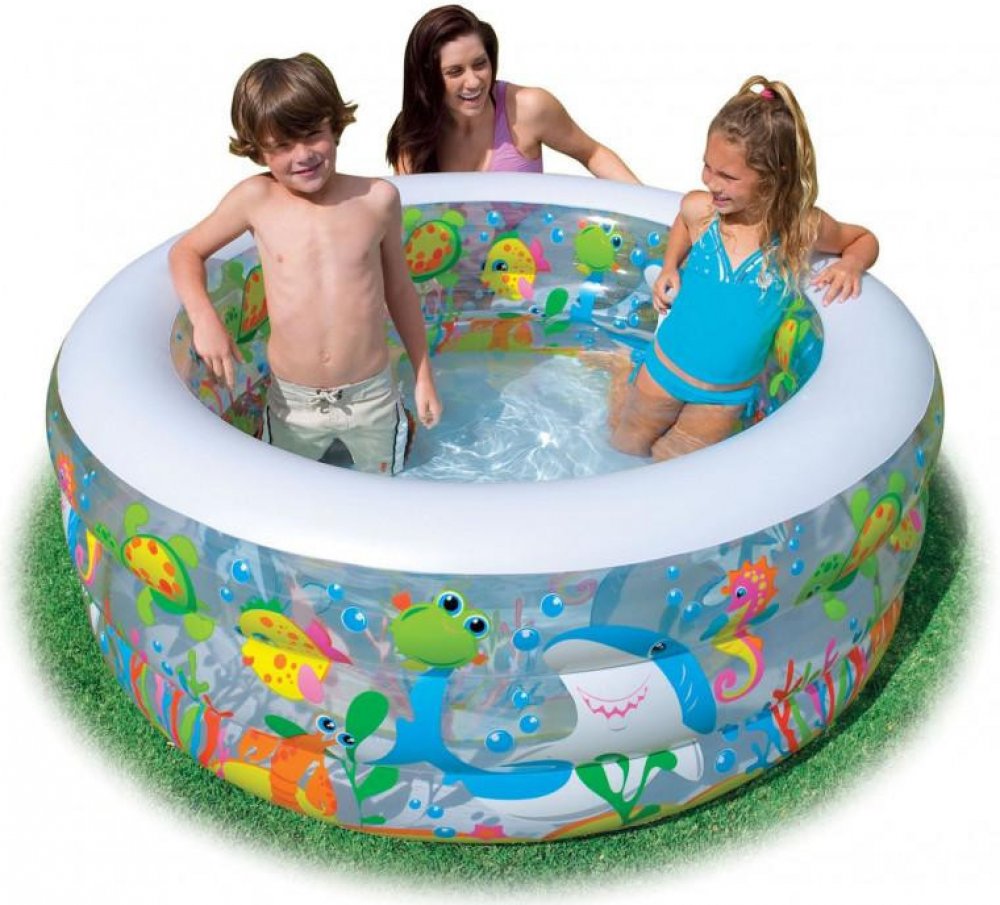 Krásný dětský průhledný nafukovací bazének s veselým mořským potiskem s vydrami, se kterým zažijete v horkých letních dnech spoustu zábavy a příjemného osvěžení.