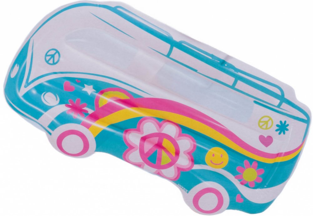 Nafukovací lehátko ve tvaru veselé barevné dodávky Groovy van s průhlednými okny. Určeno pro děti od 9 let.