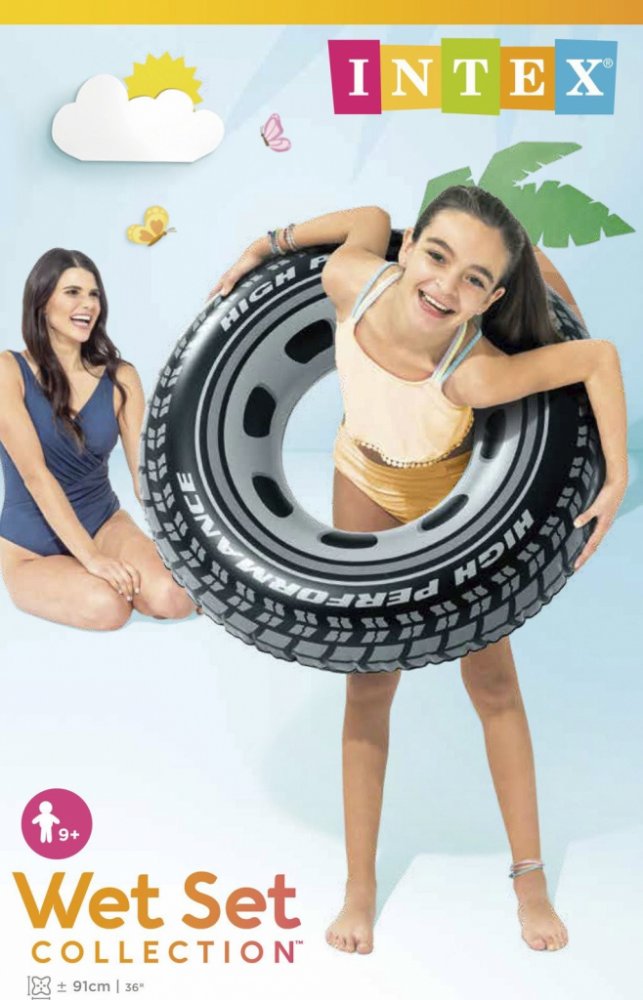 Dětské nafukovací kolo na plavání do vody pro děti, v originálním deisgnu pneumatiky. INTEX 59252