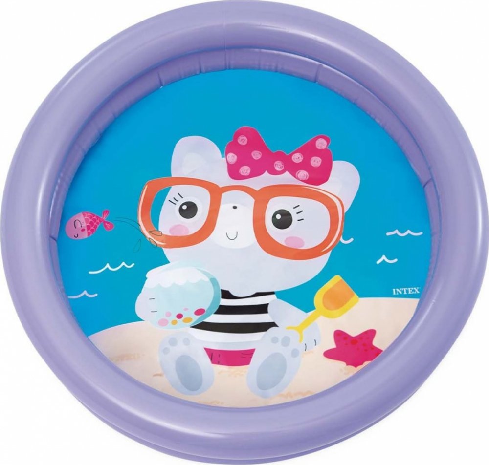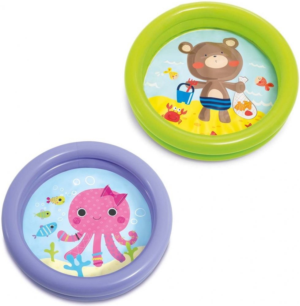 Je dvoukruhový nafukovací bazén pro nejmenší s motivem zvířátek. Výška vody do 8 cm (17L). Součástí je opravná sada.