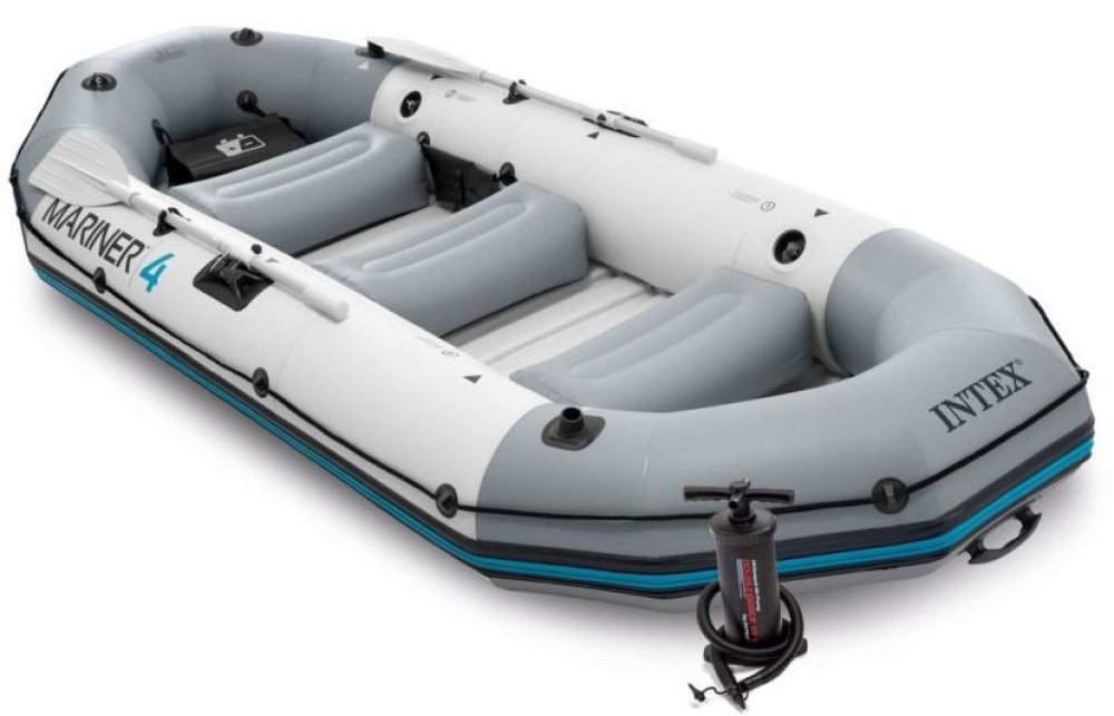 Nafukovací člun Intex Mariner 4 Set má navíc tři nafukovací sedáky, dvě vesla, dvě madla, zesílený spodní lodní trup a opravnou sadu. Člun Mariner 4 Set má ventil pro rychlé nafouknutí a vyfouknutí. Nafukovací podlaha pro extra komfort.