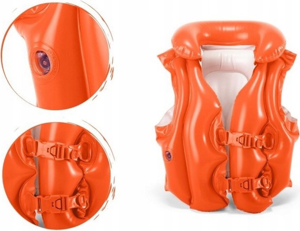 Vesta plavecká INTEX DELUXE Dětská nafukovací vesta do vody INTEX. Usnadněte Vám i Vašemu dítěti vyuku plavání. S plaveckou vestou získávají děti jistotu a odvahu. Plavání pro ně bude zábavné a bezpečné. Tříkomorová plavecká vesta pro děti je vybavena límcem.Technický popis:- Tříkomorová- 2 lehko nastavitelné pásky- materiál 0,25mm - vinyl- rozměr: 50 cm x 47 cm - maximální hmotnost uživatele: 18-30 kg Také se těšíte na letní radovánky ve vodě? Nezapomeňte však chránit ostatní - zejména malé děti. Nafukovací záchranná vesta je bezpečnostním prvkem pro výuku plavání. Vesta má límec kolem krku, nastavitelné přezky, zpětný ventil a tříkomorový systém. Doporučujeme ji používat pouze v místech, kde dítě dosáhne na dno. Záchranná vesta není určena jako vztlaková pomůcka a nechrání před utonutím. Vždy je nutný dohled dospělé osoby. Pro děti od 3 do 6 let (18-30 kg) Vyrobeno z předem testovaného vinylu Nafukovací vesta de-luxe: Dětská nafukovací plovací vesta Intex de-luxe pro děti od 3-6 let. Bezpečnostní tříkomorový systém. Materiál: vinyl o tloušťce 0,25 mm. 2 snadno zapínatelné pásy. Vhodné pro děti ve věku 3-6 let. Balení: ks Výrobce: INTEX Barva: červeno-oranžová Barva: lila transparentní Záchranná vesta pro děti Intex 58671 .