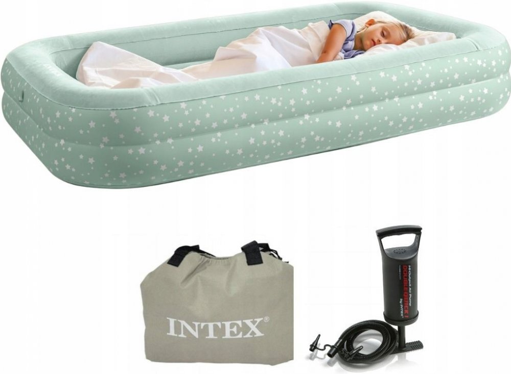 Dětská nafukovací cestovní postel značky INTEX o rozměrech 107 x 168 x 25 cm.