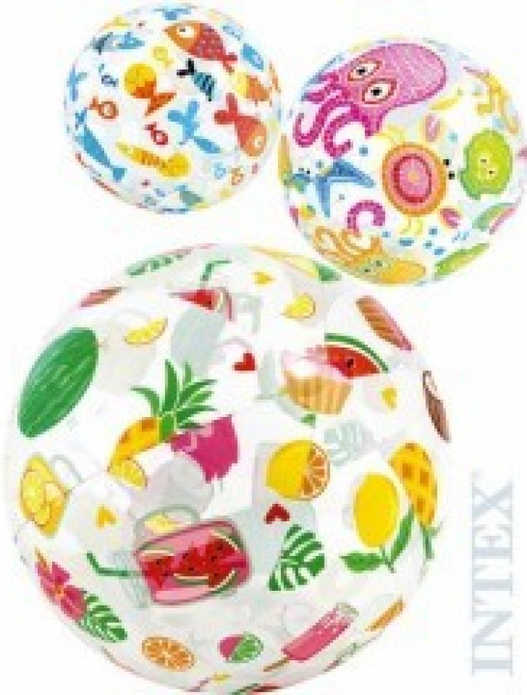 INTEX Míč dětský nafukovací s potiskem do vody průhledný 3 druhy