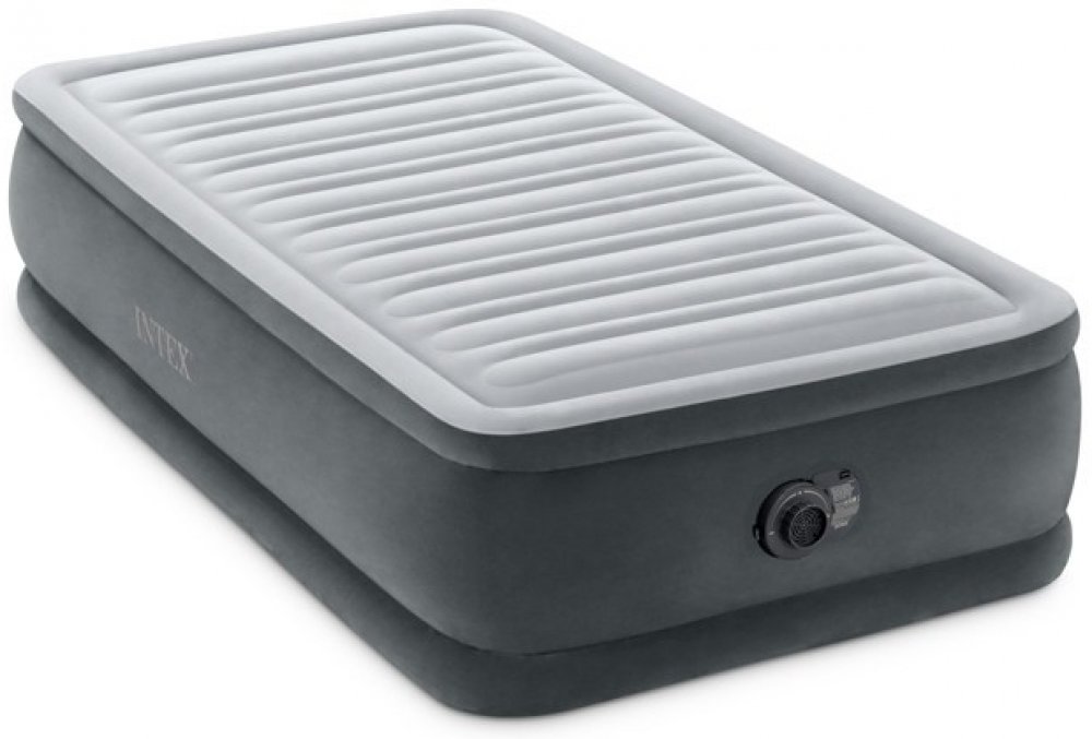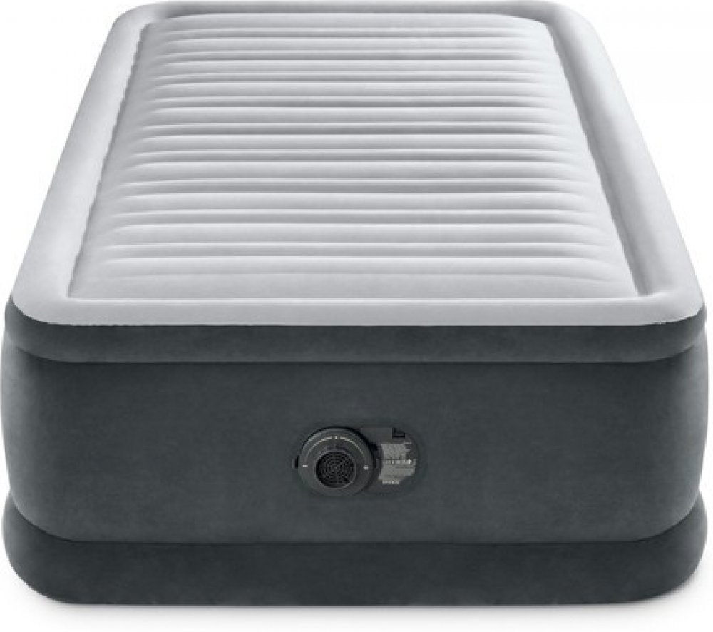 Obrovskou devizou moderní postele Intex Twin Size je snadnost jejího použití. Pryč jsou doby, kdy nafouknutí matrace byla těžká práce. Twin Size je dodávána se zabudovanou vzduchovou pumpou, která Vaši postel nafoukne za pouze 3 minuty!