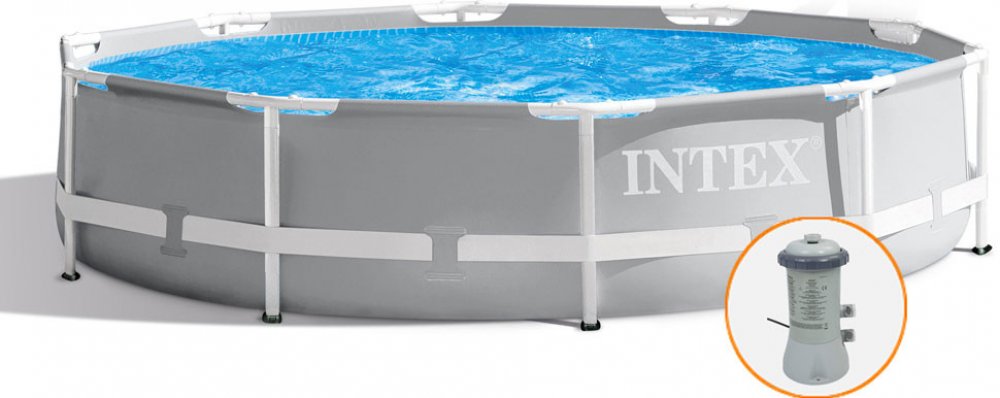 ⌀ 366 cm 6 0.5 mm 76 cm kruhové nadzemní 6503 l Intex TRITECH™ / ocel kartušová rámové bazén s kartušovou filtrací se středně náročnou instalací celoroční provoz šedé na středně velkou zahradu