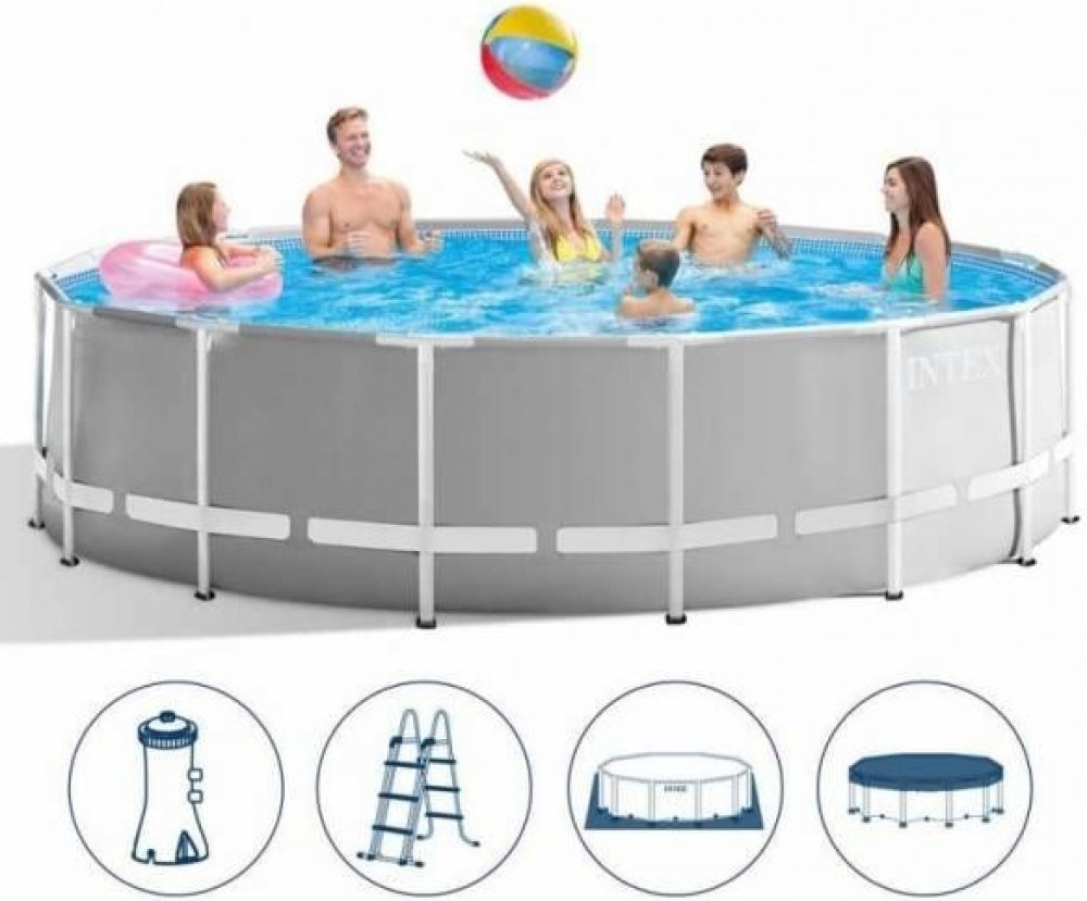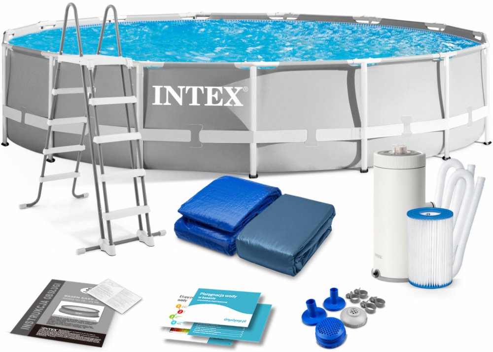 Bazén INTEX Prism Frame 4,57 x 1,07m je zahradní bazén s kovovým rámem pro povrchovou montáž. Včetně kartušové filtrace 3.785 l/hod a příslušenství. Jednoduše smontovatelný, robustní bazén s dlouhou životností.
