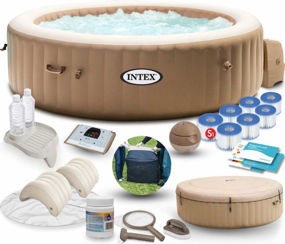 Intex 28428 Pure Spa Bubble MasageIntex Nafukovací vířivka Pure Spa zaručuje relaxaci, aniž byste opustili svůj domov. Vířivka nabízí výjimečný luxus a pohodlí pro 6 osob. Může být nainstalována uvnitř i vně domu. PureSpa má filtrační čerpadlo, topné zařízení a uživatelsky přívětivý ovládací panel. Byla také vybavena integrovaným systémem ochrany vodního kamene, který zabraňuje usazování vodního kamene a udržuje vodu čistou a měkkou. Je vyrobena z 3-vrstvého materiálu SUPER-TOUGH, který je odolný proti slunečnímu záření a slané vodě. Vířivka je velmi stabilní, protože byla vyrobena pomocí vysoce kvalitní technologie vláken. Tato metoda je založena na použití několika vláken, která zaručují trvanlivost a stabilitu konstrukce. Je také vybavena dvěma držadly, které usnadňují přepravu vířivky. Termostat udržuje teplotu vody na požadované cílové teplotě až do 40 stupňů teploty vody. Topný systém se automaticky zapne, když teplota klesne pod nastavenou hodnotu. Teplota se zobrazuje ve stupních Fahrenheita nebo Celsia. Vířivka má 140 vzduchových trysek, které zaručují příjemnou a relaxační masáž.Výhody oproti modelům jiných výrobců:Třívrstvý materiál o super tloušťce 0,84mm, vyztužený textilií140 vzduchových masážních trysek - s předehřevem nasávaného vzduchu-stop studeným bublinám útočících na Vaše záda. Modely 2020 využívají ztrátové teplo technologie k předehřevu nasávaného vzduchu.ASV automatický odpouštěcí ventil, který chrání vířivku před přetlakem v těle. Nemusíte neustále kontrolovat manometrem provozní tlakNový dotykový ovládací panelElectronic Hard water treatment - elektrické změkčování vody, snižuje tvorbu vápenatých usazenin na topném čerpadle a v trubkách, což je častý problém dodavatelů vody na většině území ČR, 10WTechnické parametry:Vnitřní průměr: 165 cmVnější průměr: 216 cmVýška : 71 cmKonstrukce: technologie Fiber-TechNastavení teploty: 20-40° CHmotnost : 49 kgObjem: 1098 lPočet osob: 6Vzduchové čerpadlo: 800 W/220-240 VHard water system: 10 WOhřev vody: 2200 W/220-240 VČas ohřevu cca 1,2-2,5°C/hodPrůtok vody: 1741 l/hPočet trysek: 140Barva: sahara TanTvar: kruhNevhodné pro děti do 3 letObsah balení:Vířivka Pure SpaTermoizolační krytTermoizolační podložkaPlovák na dávkování chemieTesterFiltrPřenosná taškaZáruka: 2 rokyNávod k použití Intex 28428 Pure Spa Bubble Masage