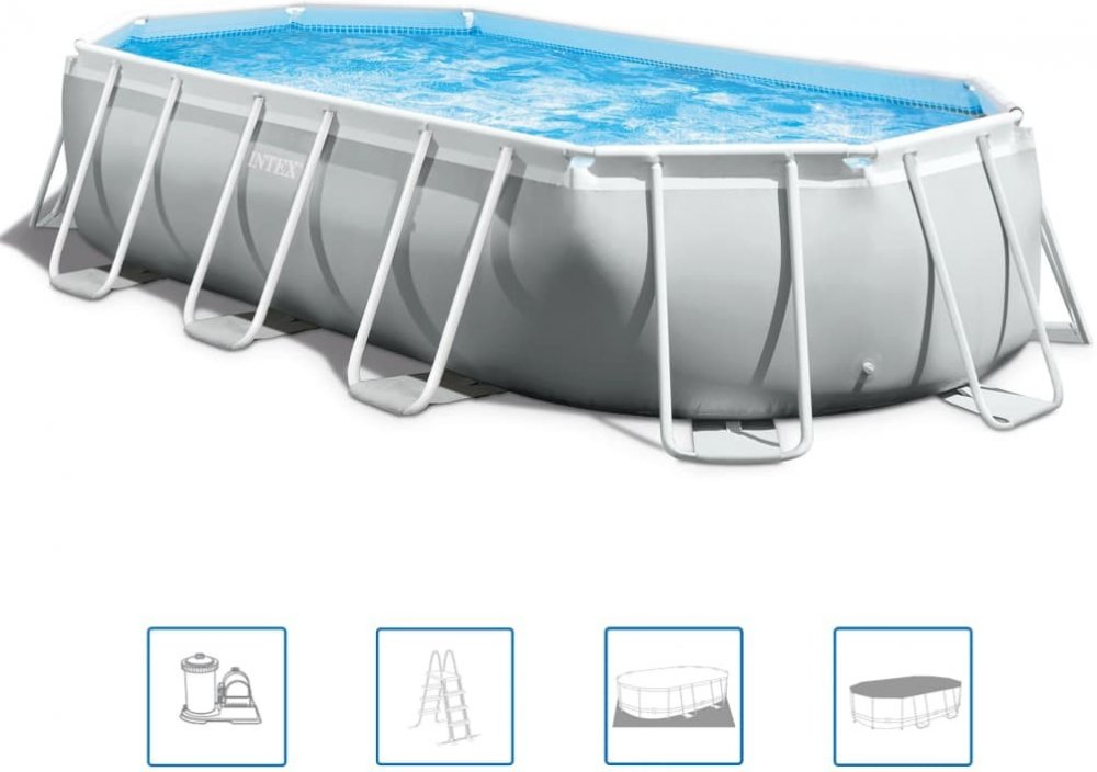 Užijte si na svém dvorku s rodinou a přáteli spoustu zábavy v bazénU Prism Frame 26796GN od značky Intex. Postavení bazénu je velmi jednoduché a rychlé. Tři vrstvy nepropíchnutelných materiálů zajišťují extrémní pevnost a odolnost bazénu. Kvalitní ocelová konstrukce mu dodává mimořádnou stabilitu. Elektrická písková filtrace je součástí oběhového systému, který udržuje vodu v bazénu čistou. Bezpečnostní schůdky vám umožní snadno do bazénu vstoupit a zase z něj vylézt. Krycí plachta ochraňuje váš bazén před nečistotami a udržuje vodu v dobrém stavu. Podložka pod bazén slouží k ochraně dna před spadanými větvičkami, ostrými kameny a jinými objekty, které by ho mohly poškodit. Když ho nepoužíváte, můžete bazén snadno složit a uschovat nebo přepravovat. Balení obsahuje 1 bazén, 1 pískové filtrační čerpadlo, 1 bezpečnostní schůdky, 1 kryt na bazén a 1 podložku pod bazén.
