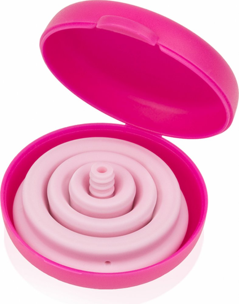 Kalíšek Lily Cup Compact vyrábí švédská firma Intimina v Číně. Je to měkký a ultra jemný kalíšek z lékařského silikonu jedinečný svým tvarem – je totiž skládací! Přizpůsobíte si tak objem kalíšku podle vašich potřeb. Stopku na konci kalíšku můžete opatrně ustřihnout, avšak pro snadnější vytahování, alespoň jednu drážku ponechejte. Mimo dny menstruace či pro cestování uschovejte kalíšek do plastového pouzdra, které je součástí balení.