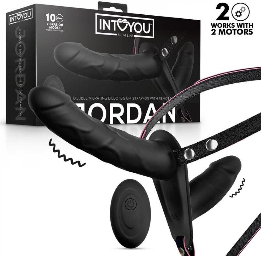 InToYou Jordan Double Vibrating Dildo Strap on with Remote Black