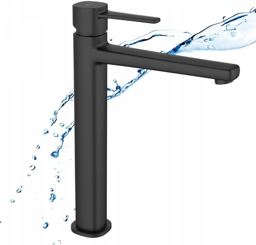 Vysoká umyvadlová baterie ze série GLAMOUR je moderní a funkční koupelnová baterie. Díky černému povrchu je vhodná pro mnoho různých uspořádání. Výrobek se perfektně hodí k umyvadlům na desku, které v kombinaci vytvářejí dokonale dokončenou umyvadlovou zónu. Vysoká kvalita zajišťuje mnohaleté používání. Minimalistický design baterie se hodí i do malých koupelen v paneláku.
