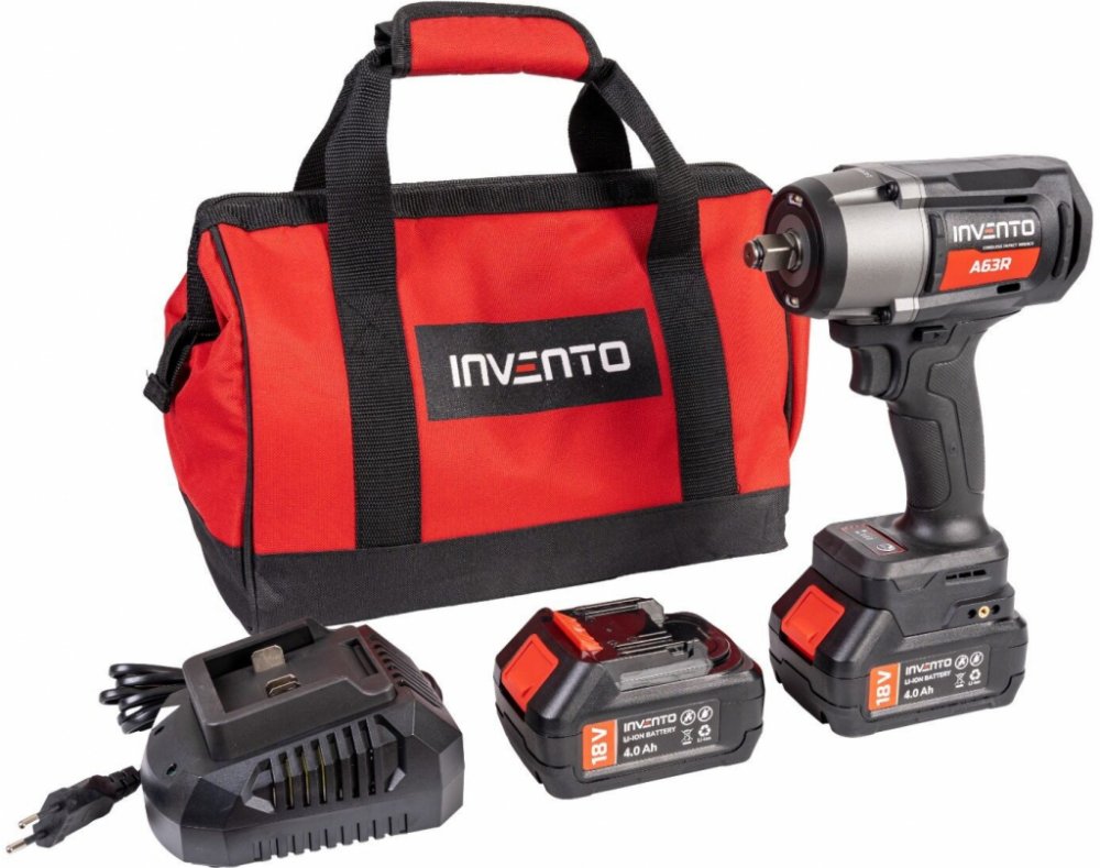 Akumulátorový rázový utahovák Invento A63R 1/2" 1180 Nm – sada 2× 4 Ah, nabíječka, taška