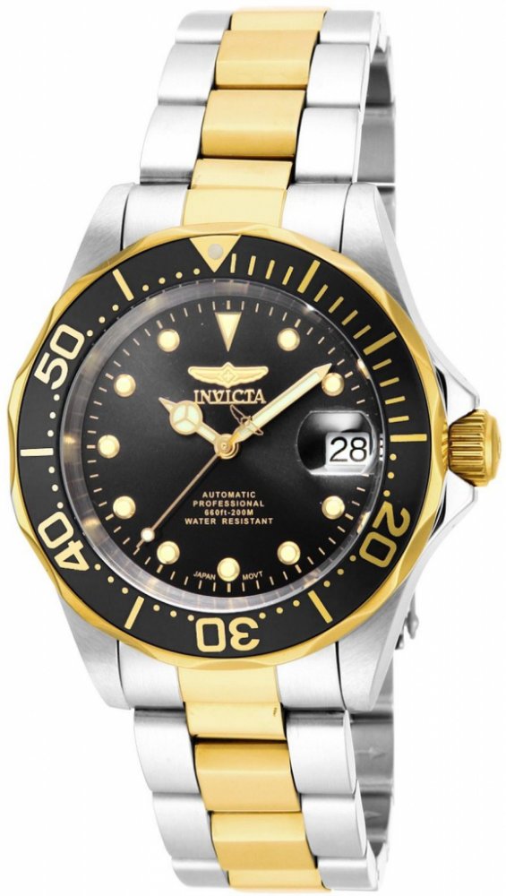 Invicta analogové ocel pánské automatické ocel 200 m automatické 152 g minerální bez osazení Pro Diver kulaté vícebarevná černá s luminiscencí překlápěcí spona