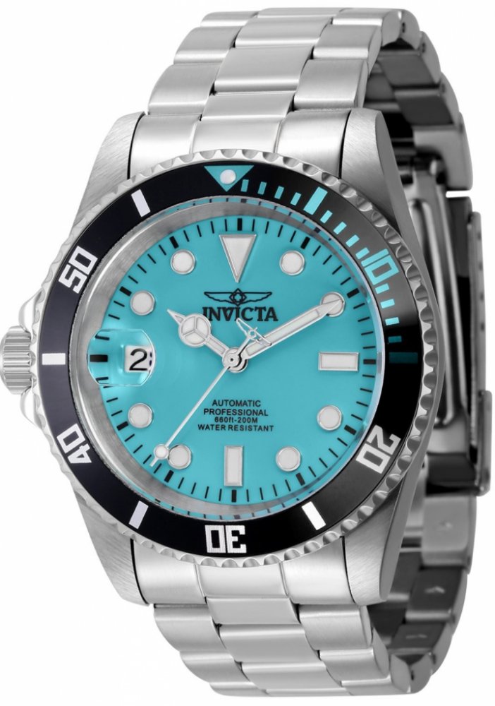 Invicta analogové ocel sportovní pánské automatické pro potápění (100+ m) 42 mm ocel 200 m automatické minerální 21.0 cm bez osazení Pro Diver kulaté stříbrná tyrkysová skládací spona 2.2 cm na ruku bez číslic stříbrná ocel 4.2 cm střední jednosměrně otočná ocel s občasnou údržbou (automatické) bez chytrých funkcí