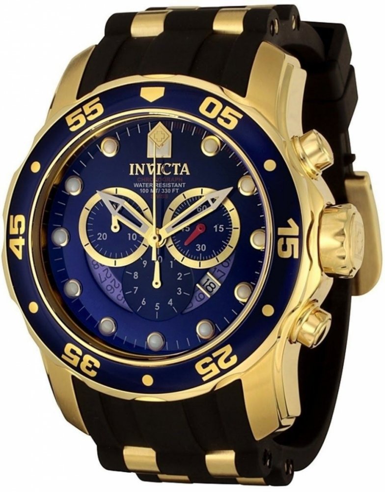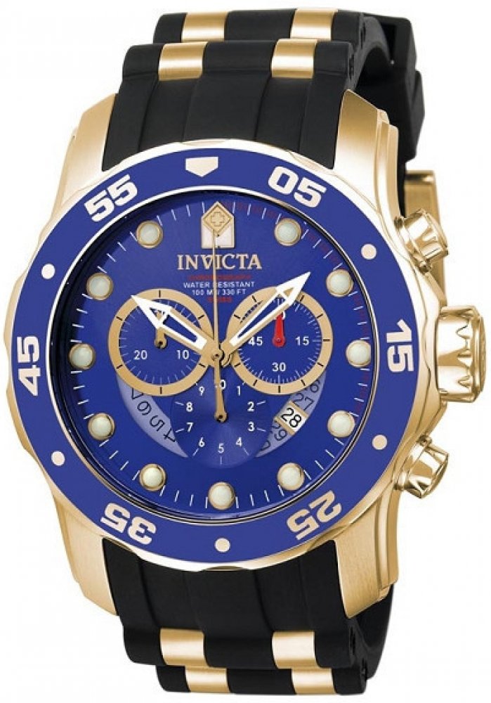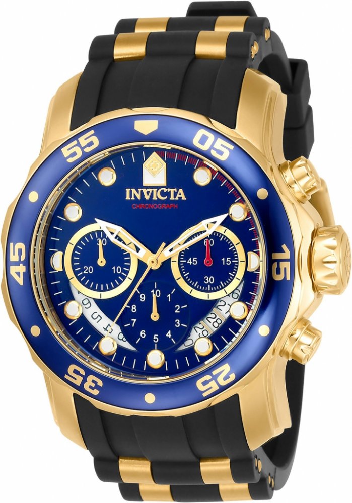 Invicta analogové silikon ocel 48 x 59 x 17 mm 100 m bateriové 189 g minerální sportovní pánské 4.8 cm bateriové - quartz bez osazení Diver kulaté vícebarevná modrá na přezku 2.6 cm