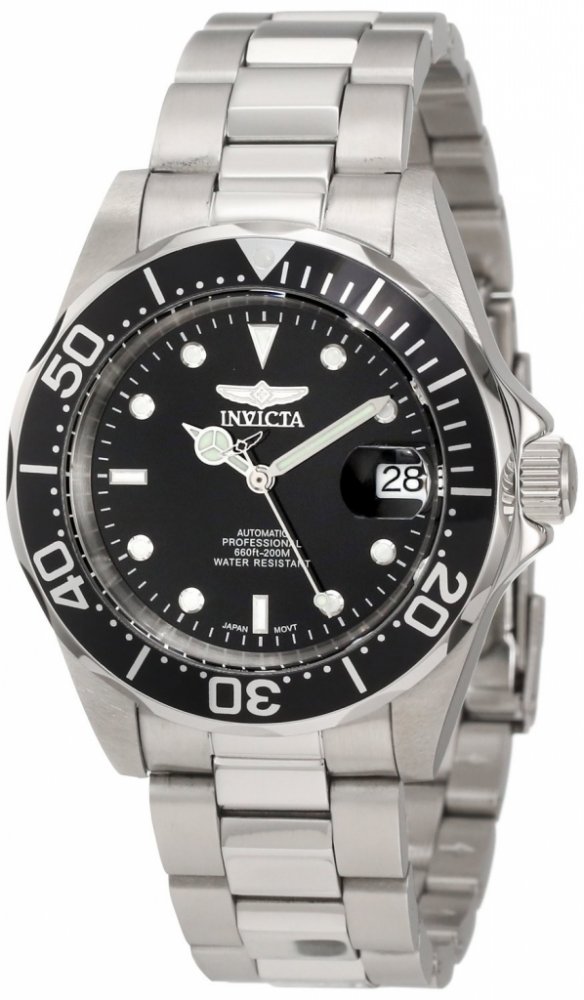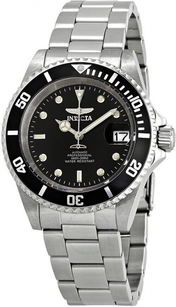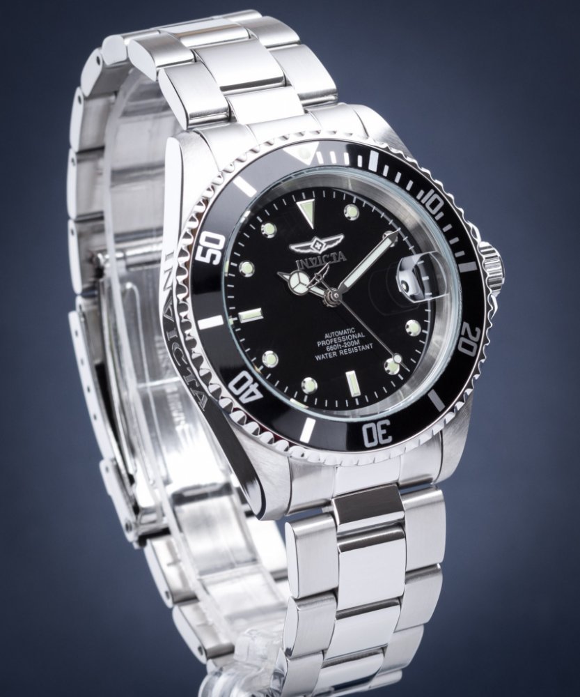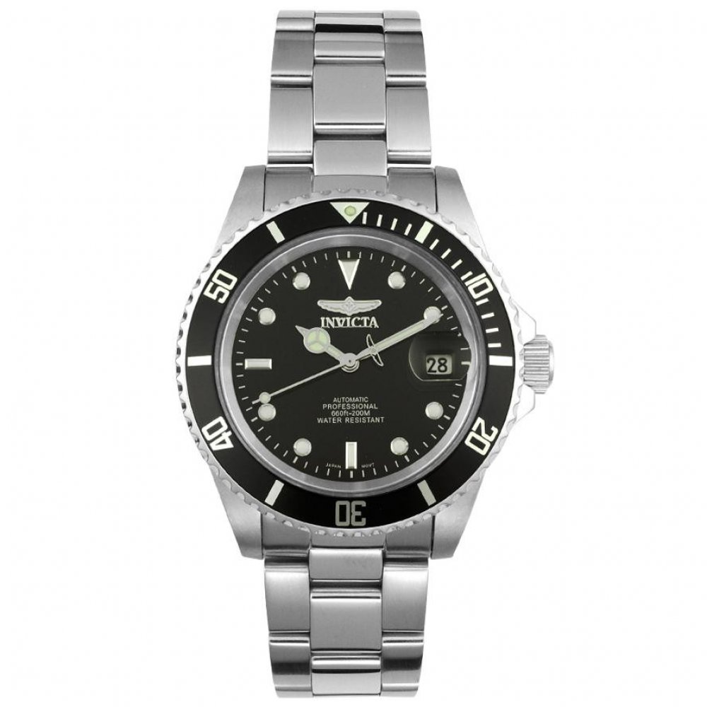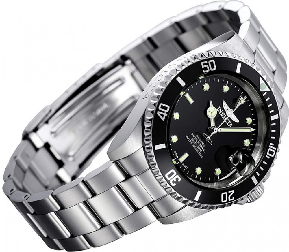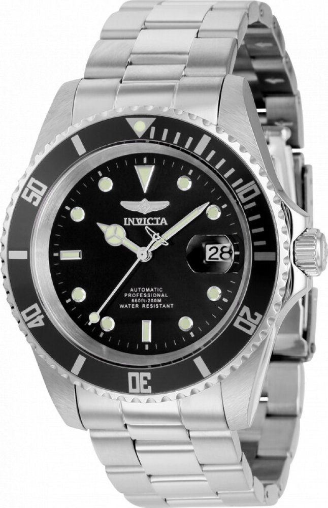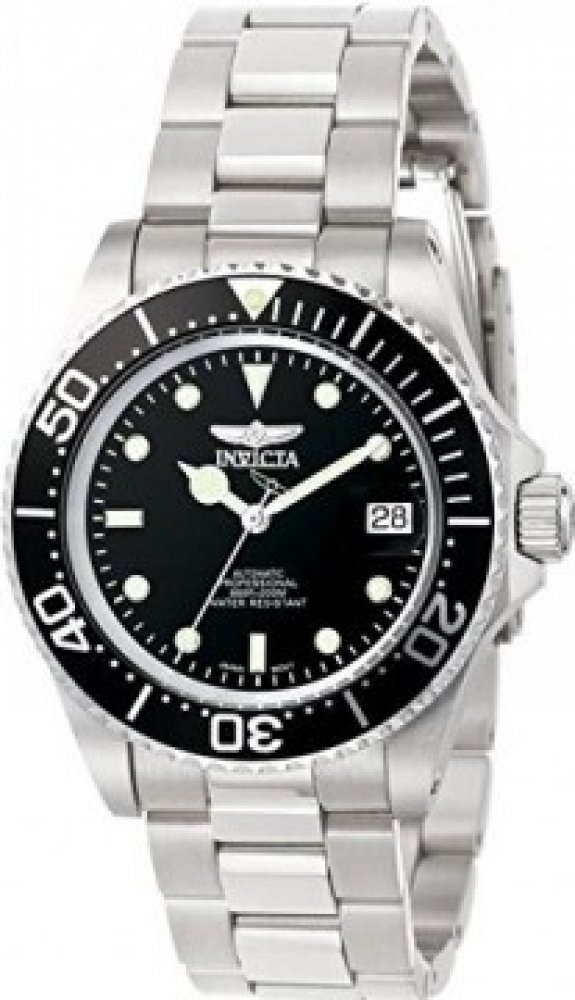 Invicta analogové ocel sportovní pánské automatické pro potápění (100+ m) 40 mm ocel 200 m automatické 155 g minerální bez osazení Invicta kulaté stříbrná černá s luminiscencí překlápěcí spona 2 cm na ruku švýcarské bez číslic stříbrná ocel 4.0 cm střední jednosměrně otočná 41 h 48 mm 20.0 mm 14 mm 40 mm s dočasným svícením (luminiscence/LED) s občasnou údržbou (automatické) bez chytrých funkcí