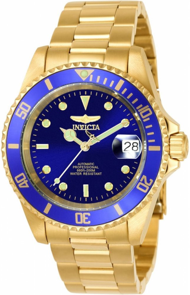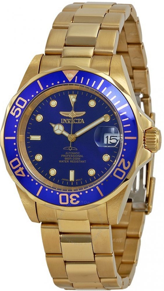 Invicta analogové ocel sportovní pánské automatické pro potápění (100+ m) 40 mm ocel 42 x 50 x 14 mm 200 m automatické 155 g minerální bez osazení Invicta kulaté zlatá modrá s luminiscencí překlápěcí spona 2 cm na ruku švýcarské bez číslic zlatá ocel 4.0 cm velké jednosměrně otočná 41 h 50 mm 20.0 mm 14 mm 42 mm s dočasným svícením (luminiscence/LED) s občasnou údržbou (automatické) bez chytrých funkcí