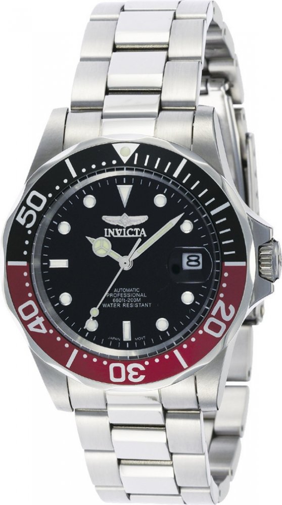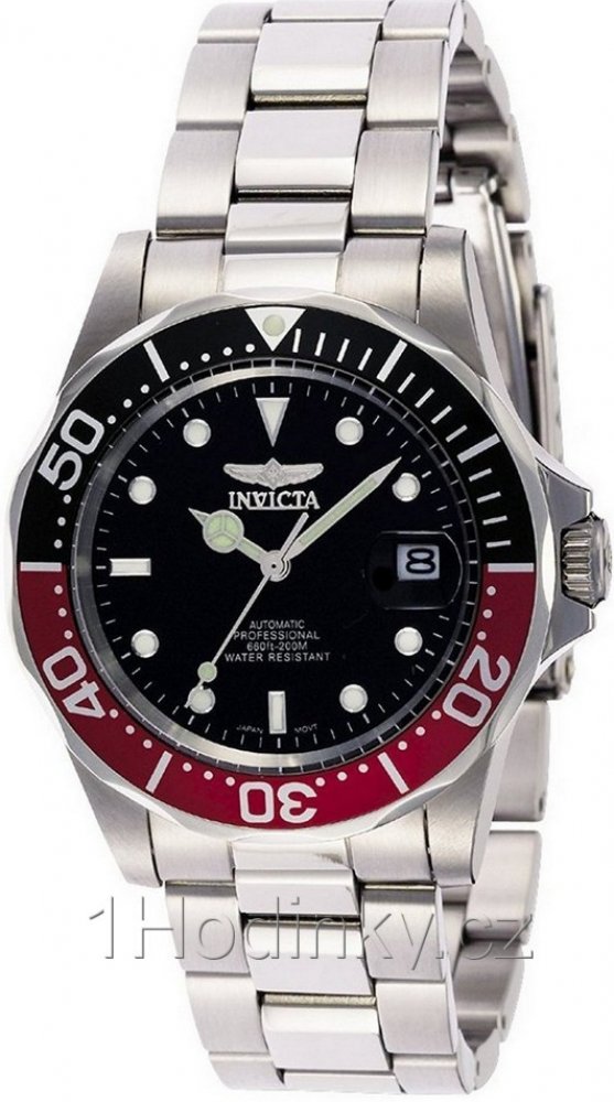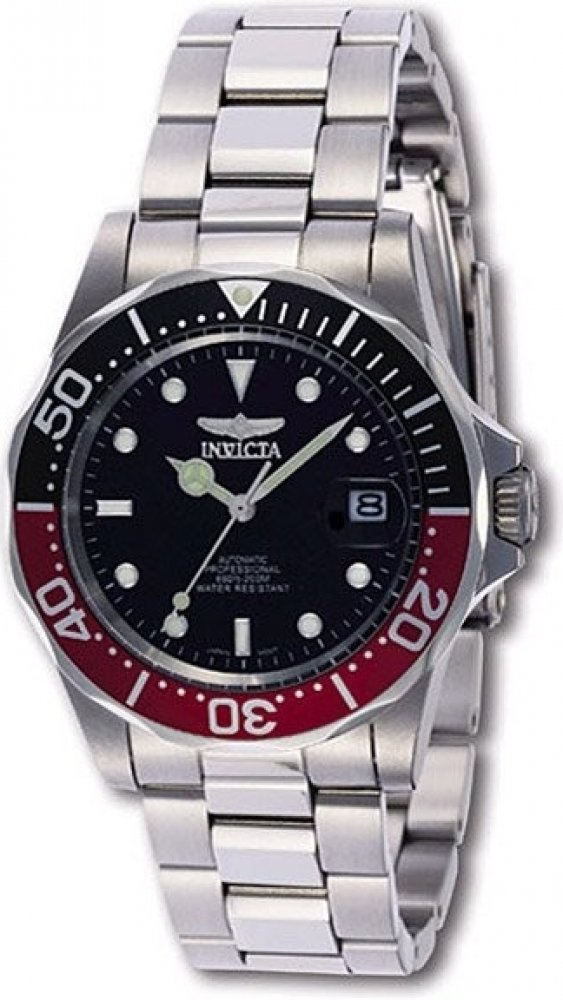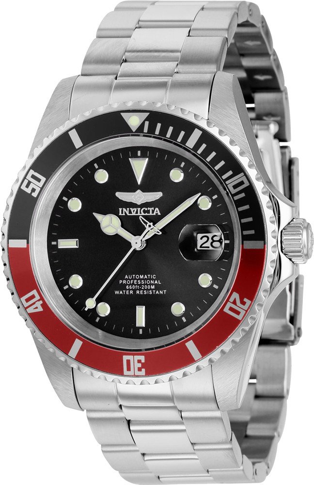 Invicta analogové ocel sportovní pánské automatické pro potápění (100+ m) 40.0 mm ocel 200 m automatické minerální 20.5 cm Pro Diver kulaté stříbrná černá s luminiscencí překlápěcí spona 2 cm na ruku bez číslic stříbrná ocel 4.0 cm střední ocel 41 h 48 mm 20.0 mm 14 mm 40 mm s dočasným svícením (luminiscence/LED) s občasnou údržbou (automatické) bez chytrých funkcí