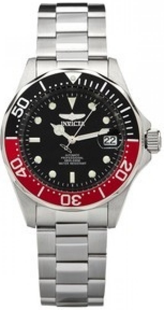 Hondinky Invicta 9403 mají 40mm pouzdro z Nerezová ocel s černým ciferníkem. Tento model je poháněn přesným strojkem Automatické. Vodotěsnost 20 barů. Tento model je součástí kolekce Invicta Pro Diver. Zahrnuje 2 letou Invicta-záruku.
