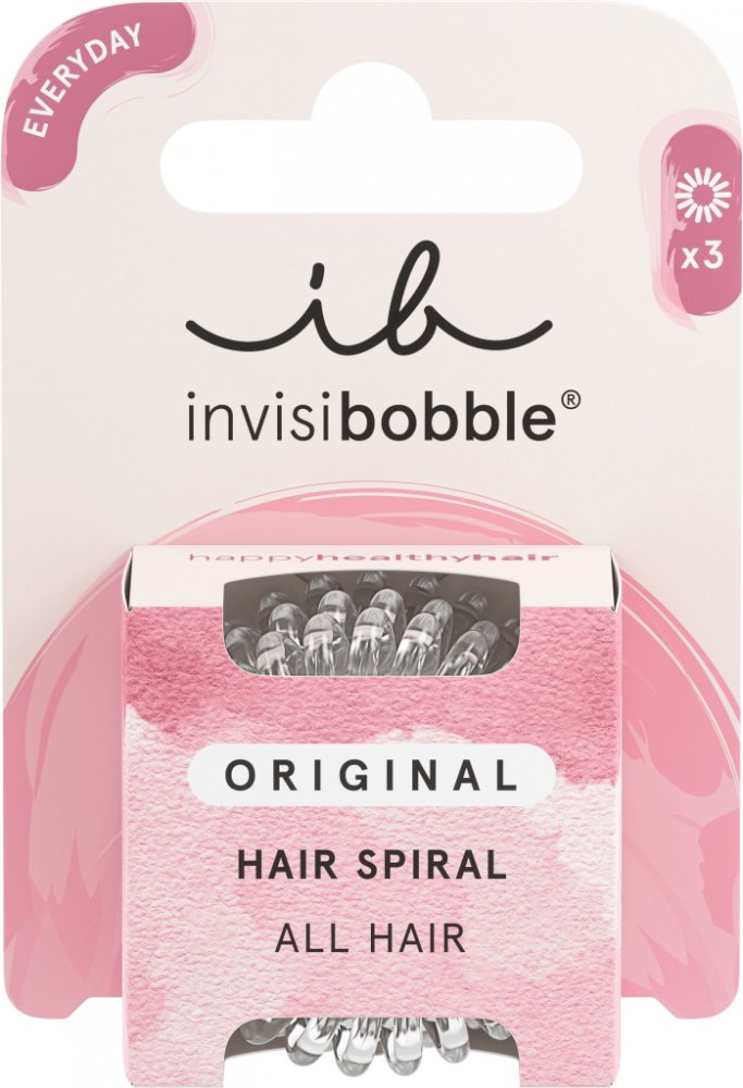 Klíčové vlastnosti produktu invisibobble® ORIGINAL Crystal Clear Gumičky do vlasů INVISIBOBBLE poskytují možnost tvořit širokou škálu účesů a spolehlivě drží vlasy na místě Využijete je při stylování culíku, copu či drdolu V balení jsou 3 gumičky do vlasů Materiál: polyester