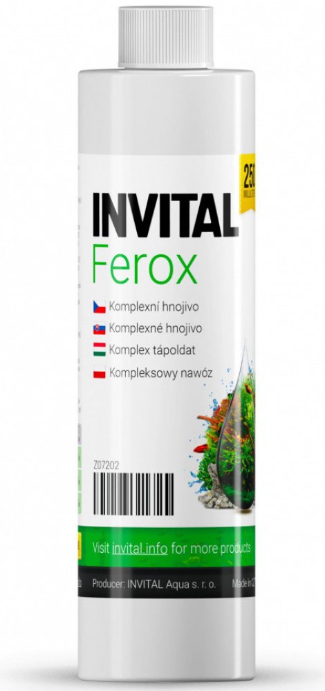 Silně osvětlená a zarostlá akvária vyžadují na rozdíl od běžných akvárií i makroživiny dusík, fosfor a draslík. Jejich přidávání do běžných akvárií by bylo kontraproduktivní. Z toho důvodu je tu hnojivo INVITAL Macro, které je ideální v kombinaci s Feroxem. Na rozdíl od jiných značek hnojiv ušetříte, jelikož není potřeba nakupovat 3 další hnojiva ve formě hnojiva na dusík, na fosfor a na draslík, ale obdržíte jedno s vhodným poměrem jednotlivých živin. Forma použitého železa je vhodná jak pro akvária s nízkým pH, kde je přidáváno CO2, tak na rozdíl od mnoha jiných hnojiv s železem i pro akvária s vysokým pH. Díky použitému chelátu železa DTPA tak dokáží železo přijmout i rostliny v akváriu bez přidávání CO2 s vyšším a neutrálním pH. Při doporučeném dávkování týdně dodáte až 0,25 mg/l železa na 100 litrů. S Feroxem tedy můžete při doporučených dávkách hnojit i silně zarostlá akvária a stále budou mít rostliny dostatek železa. Většina hnojiv na trhu dodá 2 až 3× méně železa v doporučené dávce oproti Feroxu.