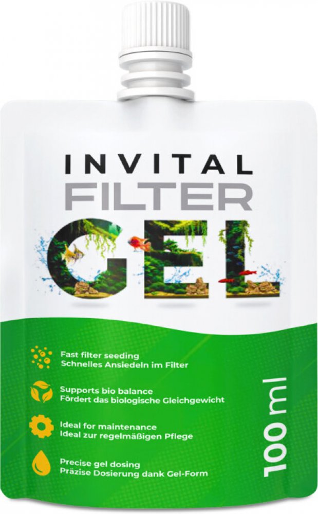 Přípravek INVITAL FilterGel se aplikuje přímo na filtrační biomolitany nebo jiné filtrační materiály ve vnějším filtru. Hustý gel zajišťuje, že se miliardy aktivních bakterií rovnoměrně rozloží po celém povrchu filtračního média a ihned se začnou množit.