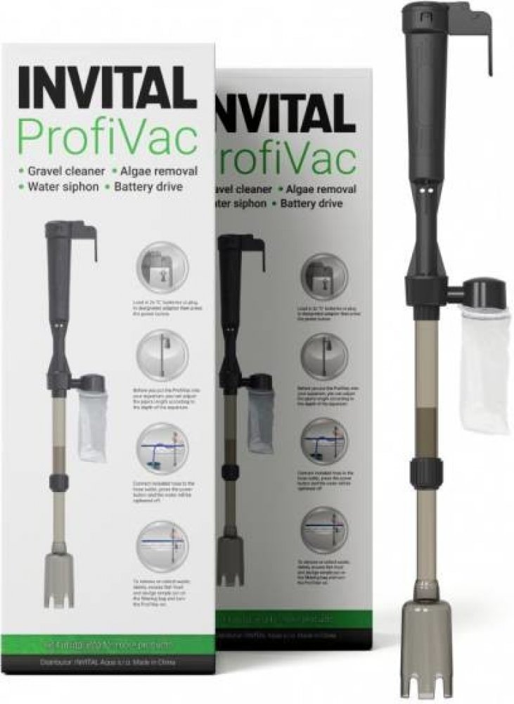 INVITAL ProfiVac je praktický bateriový odkalovač pro odkalování usazenin ze dna ve dvou režimech - klasické odkalování přes napojenou hadici a odkalování v uzavřeném okruhu bez nutnosti vypouštění vody. Díky teleskopickému nástavci je možné regulovat jeho výšku až do 82 cm.