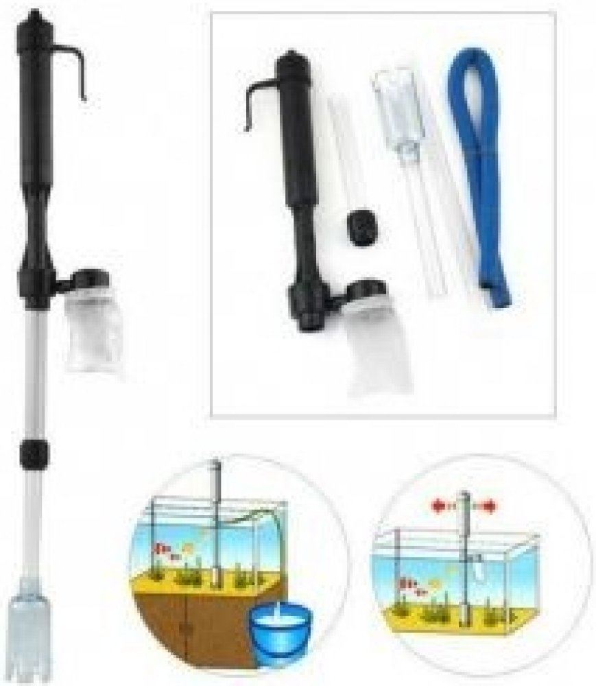 Odkalovač nasává vodu s nečistotami ze dna, přičemž máme na výtoku nasazenou hadici a nasátá voda je odváděna pryč z akvária.