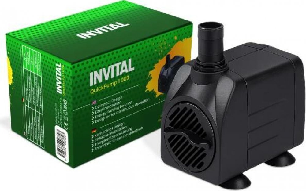 INVITAL QuickPump je univerzální výtlačné čerpadlo s regulací výkonu vhodné pro široké spektrum použití - od vodních dekorací a vodopádů, přes pohon akvarijních filtrací, až po odčerpávání vody při údržbě akvária. Díky manuální regulaci průtoku se snadno přizpůsobí konkrétnímu využití, a stejně jako ostatní čerpadla INVITAL nabízí skvělý poměr cena/výkon.