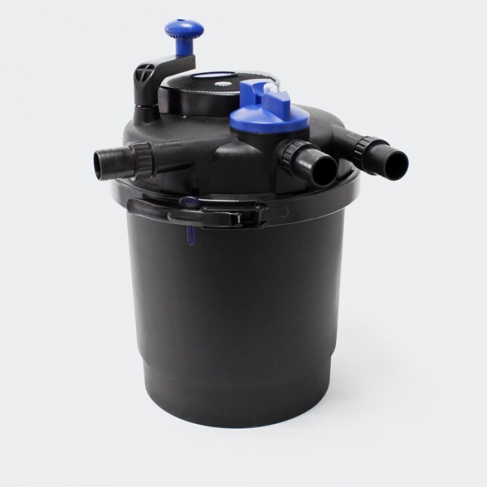 Oproti biologickým filtrům jsou filtry tlakové kompletně uzavřené a můžete s větším klidem nechat filtr vkuse zapnutý, neboť nehrozí jeho přetečení. Rovněž umožňuje umístění i v úrovni pod hladinou. Výkon filtrace je rovněž velmi pozoruhodný, kdy oproti zmíněným biologickým filtrům mají při výrazně menším objemu stejný, ne-li lepší filtrační výkon. Řada tlakových filtrů INVITAL navíc má v sobě integrovanou UV lampu, která účinně likviduje řasy a parazitální nemoci. Více o UV lampách se dozvíte v našem článku Jak vybrat UV lampu do jezírka Funkce Zajišťuje stabilní, biologickou rovnováhu v zahradních jezírcích a značně zlepšuje kvalitu vody bez chemikálií. Filtr vytváří čistou vodu pro rybníky bez ryb do 6 000l nebo s rybami do 3 000 l. Filtrační systém by měl být provozován 24 hodin denně, aby optimálně podporoval zdravé klima, bujnou vegetaci a spokojenost a zdraví ryb. Účinná filtrace jde skrze speciální filtrační materiály, jako je žlutá a modrá houba s různými rychlostmi průchodu vody, která mají velký povrch a to umožňuje osídlení bakteriemi. Filtrační média jsou součásti balení. Přednosti Integrovaná UV lampa K účinné filtraci je připojena UV lampa, která vodu "dočišťuje" tím, že ji zbavuje řas a parazitů. Integrovaný čistící systém Tento filtr obsahuje i integrovaný systém čištění, který velice usnadňuje provoz filtru. Obsluha je velice jednoduchá, pouze vypnete přívod vody do filtru, kličkou na hlavě filtru zatočíte čímž vyčistíte filtrační média. Poté přepnete směr vytékání vody pomocí přepínače na odtokovou hadici a vypláchnete znečištěnou vodu z filtru. Kompletně uzavřený systém Veškerá elektroinstalace a funkční prvky jsou uzavřené a tak můžete filtr bez problému schovat do země vedle jezírka pod kámen. Indikátor znečištění Na hlavě filtru se nachází i indikátor znečištění, který vám pomocí vizuální kontroly řekne, kdy je na čase očistit filtrační materiály. Variabilní napojení Nástavec na hadici je složen z více rozměru hadice z čerpadla. Tím pádem nemusíte řešit žádné redukce, či spojky. Příklad zapojení Čerpadlo tlačí vodu z úrovně dna do tlakového filtru, kde prochází voda všemi filtračními médii. Na závěr než opustí filtr výstupním ventilem je ozářena UV zářením z UV lampy. Vodu pak následně přes hadici dopravíme na místo kde chcete její výtok. Při vedení hadice do vyšších poloh je nutné počítat a přizpůsobit tomu zvolení čerpadla dle výtlaku. Je nutno dodržet maximální průtok filtru!! Technická data Vstupní napětí 230V ~ 50Hz Výkon UV lampy 11W Připojení hadice 20 mm / 25 mm / 32 mm (hadice není součástí balení) Pro jezírko bez ryb max 6 000L Pro jezírko s rybami max 3 000L Doporučený průtok do 6000 l/h Objem filtrace 16 L Délka přívodního kabelu 5m Kvalita a cena Veškeré zboží značky INVITAL dovážíme přímo od produkční továrny. To zaručuje nejnižší cenu a kvalitní spolehlivý servis. Výrobní továrna patří mezi největší na světě, kde si nechávají vyrábět část své produkce nejrenomovanější značky z odvětví zahradních jezírek. To zaručuje nejmodernější postupy výroby a nadstandardní kvalitu zpracování. Veškeré výrobky jsou již testovány v továrně na vodotěsnost a elektroinstalaci. Pokud si stále nevíte s výběrem filtru rady, tak můžete navštívit náš článek o zvolení filtrace do jezírka. Čerpadlo Součásti balení není čerpadlo. Výběr s ohledem na průtok filtru / množství ryb a výtlak doporučujeme přes naši Tabulku doporučených sestav, která obsahuje veškeré základní potřebné informace.